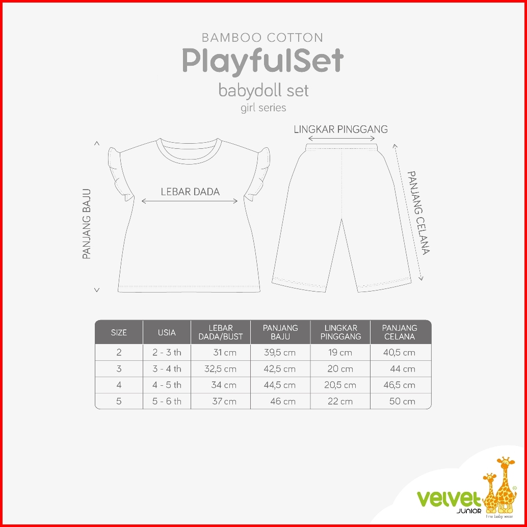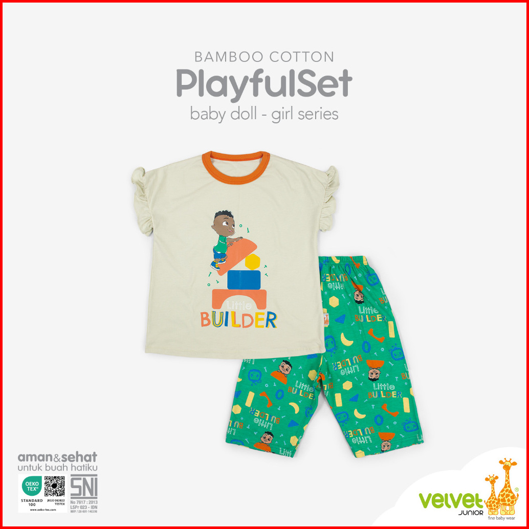 Velvet Junior Setelan Kaos Anak Perempuan - Bamboo Cotton Girls Baby Dolls Set T Shirt Babydoll Celana 7 8 - Little Buil