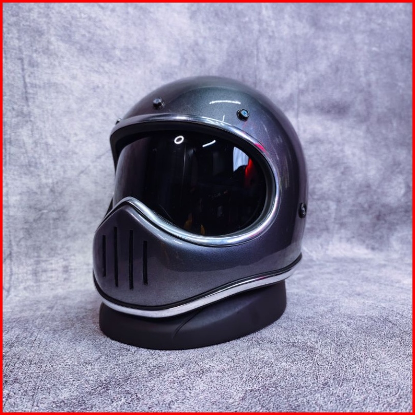 Helm Custom Classic Cakil Klasik Retro List Chrome