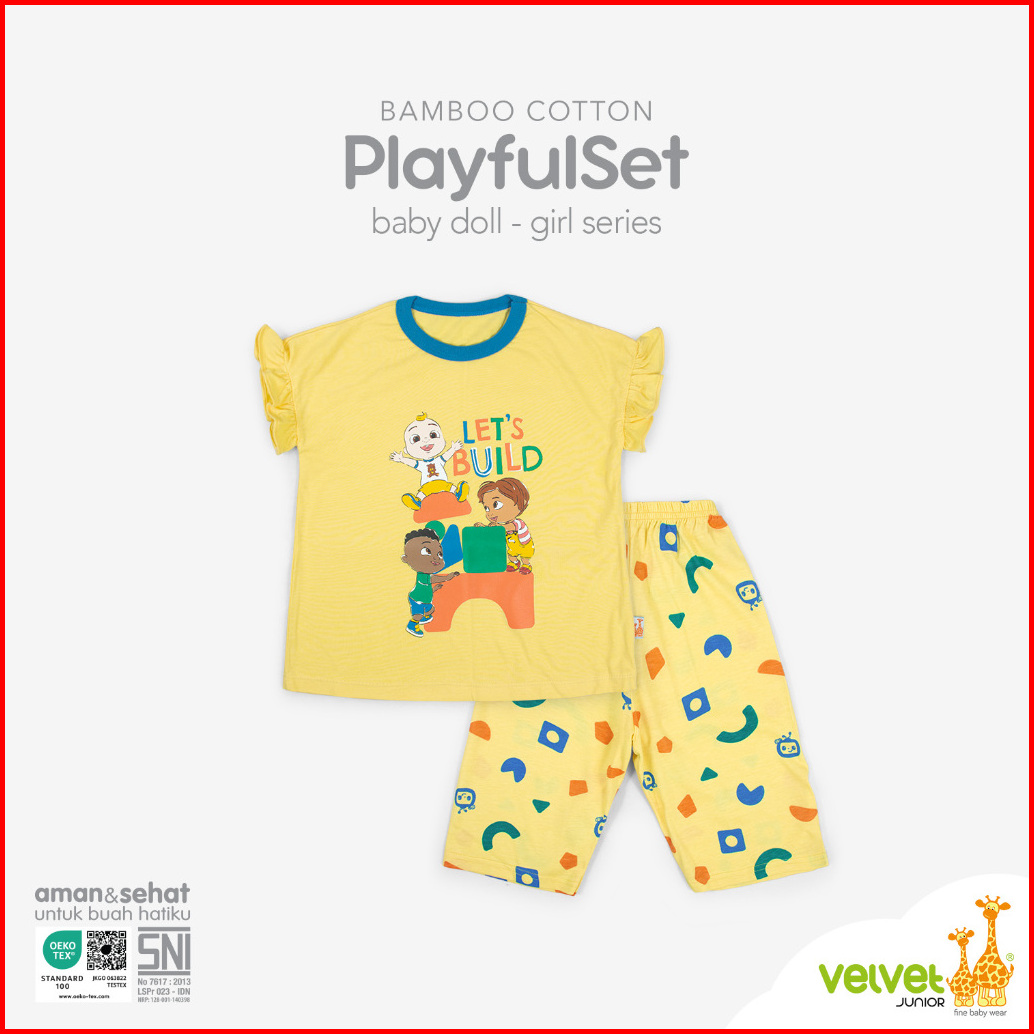 Velvet Junior Setelan Kaos Anak Perempuan - Bamboo Cotton Girls Baby Dolls Set T Shirt Babydoll Celana 7 8 - Let S Build