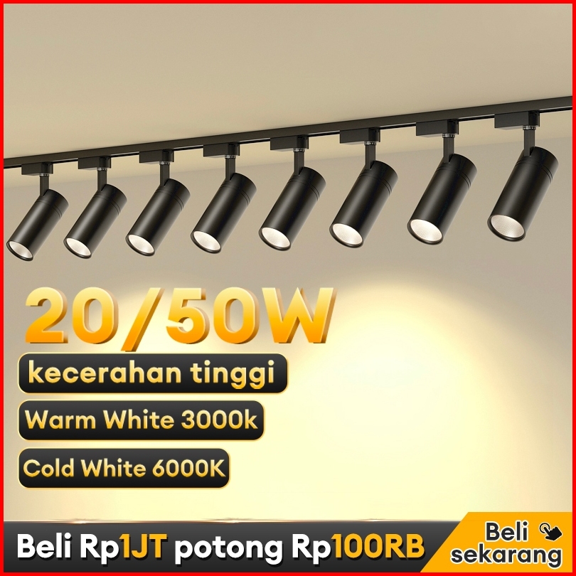 Garansi 30 Tahun Lampu Sorot Lampu Rell Track Led Sorot 50w Rotasi Kiri Dan Kanan 360 Putih Kuning Pencahayaan Lampu Sor