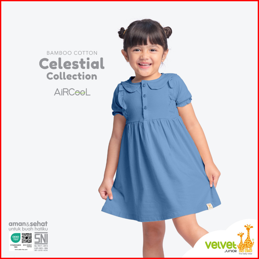 Velvet Junior Baju Anak Celestial Collection Round Collar Dress - Elena - Dress Pendek Kerah Rebah Celestial 7 Series