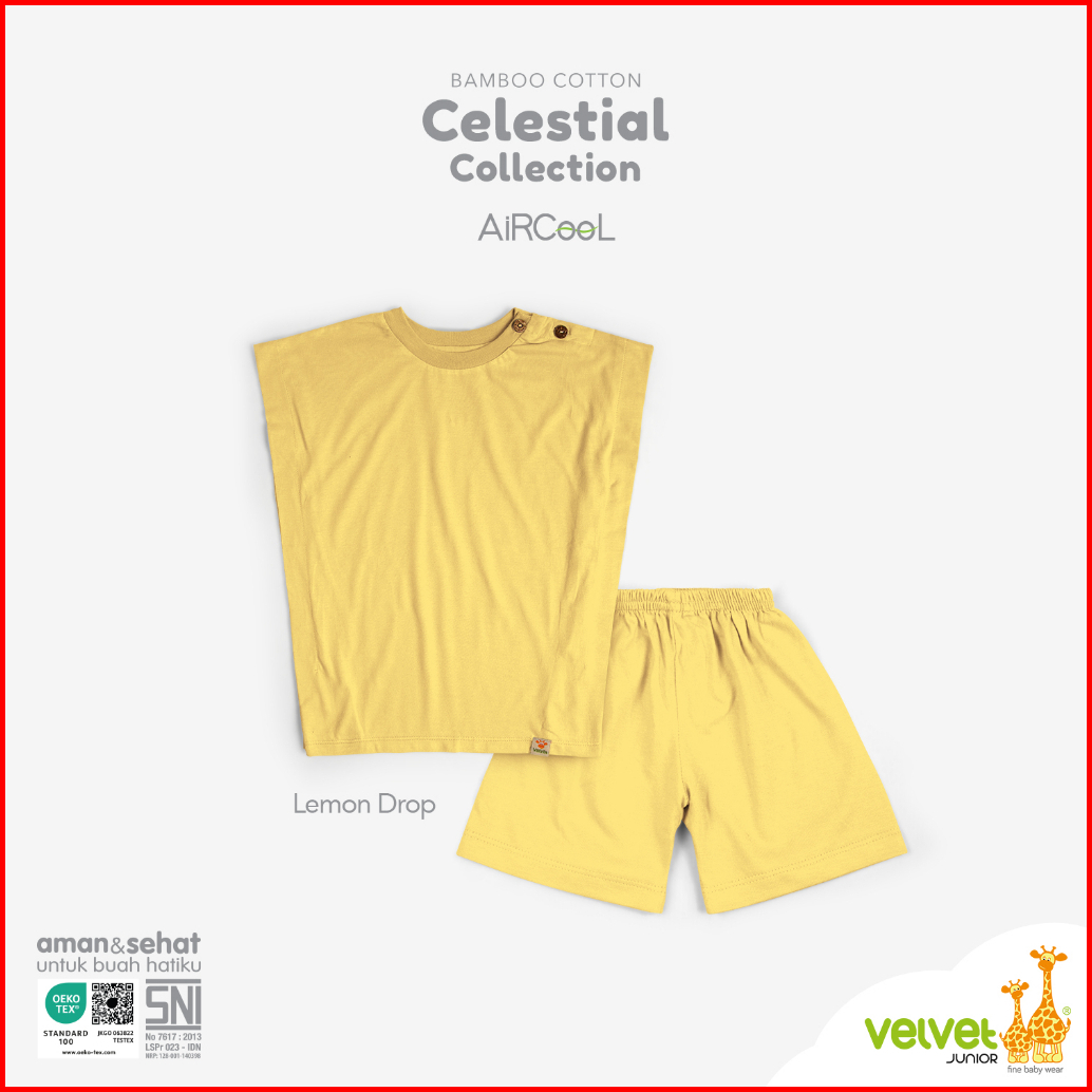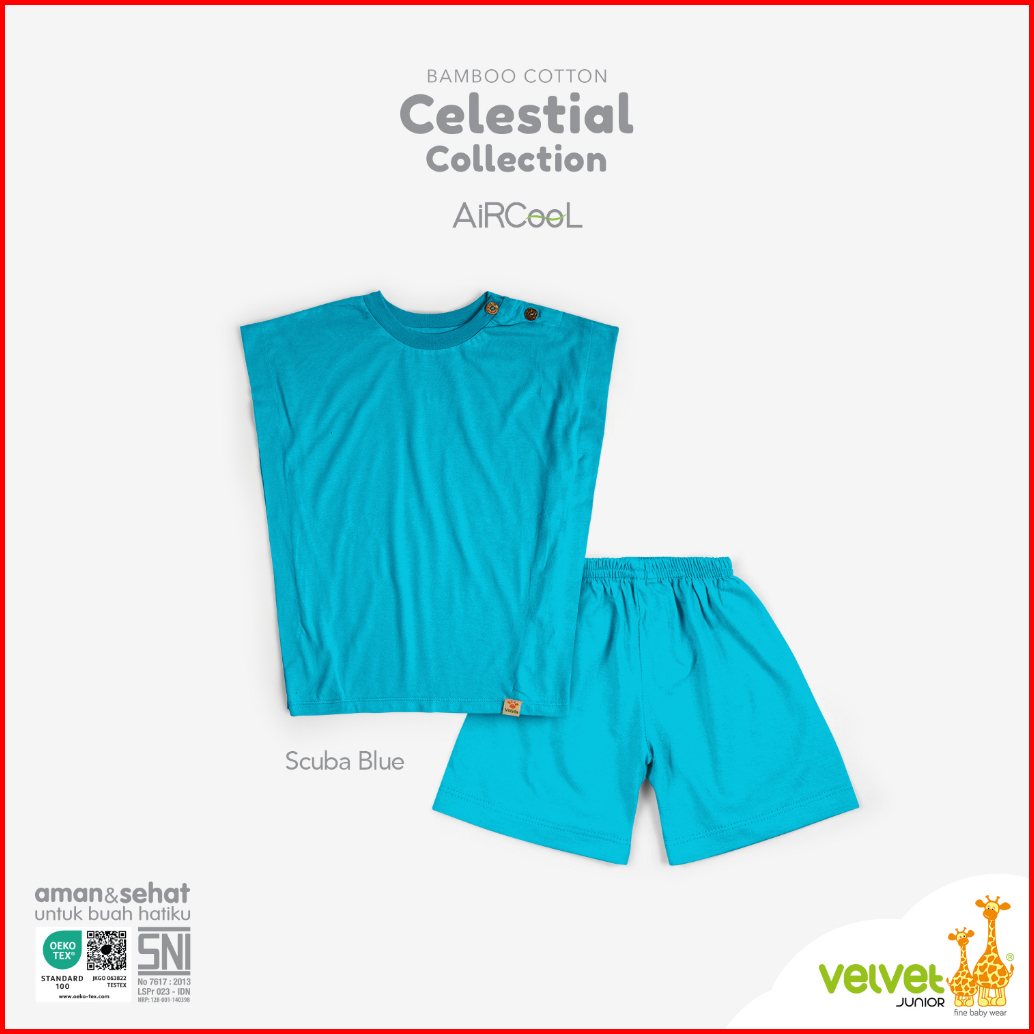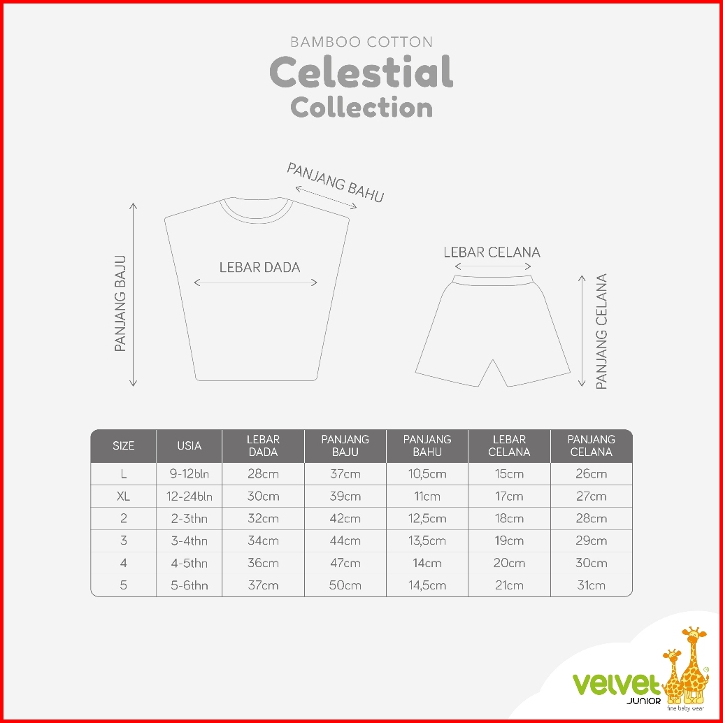 Velvet Junior Piyama Bamboo Cotton Baju Anak Sayap Celana Pendek Celestial 6 Series