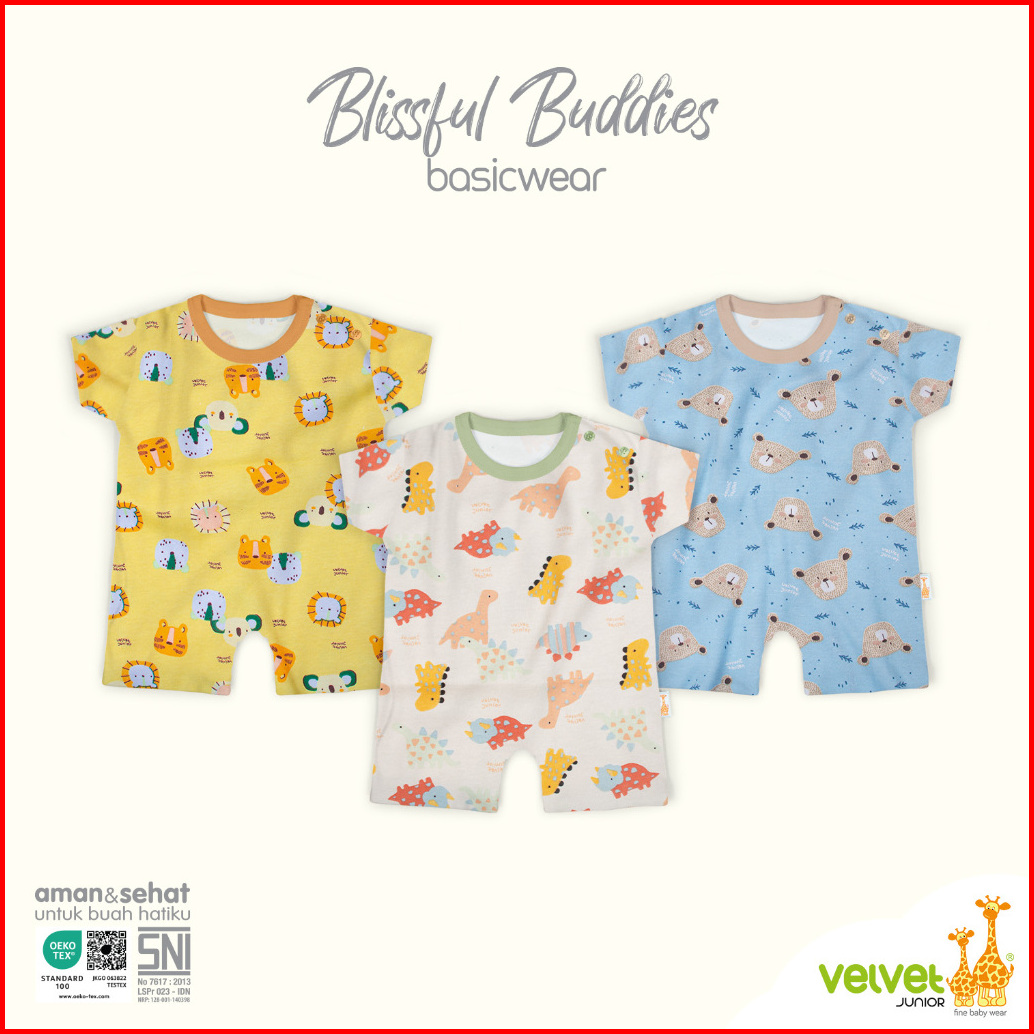 Velvet Junior Jumper Bayi Bodysuit Segiempat - Basicwear Blissful Buddies Happy Days Endearing