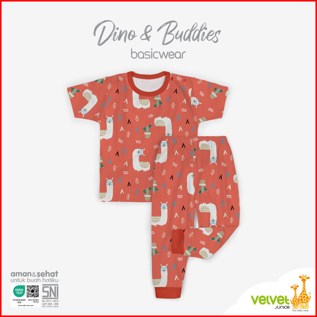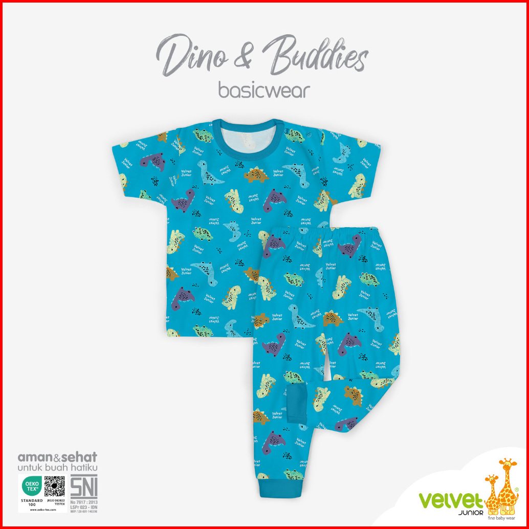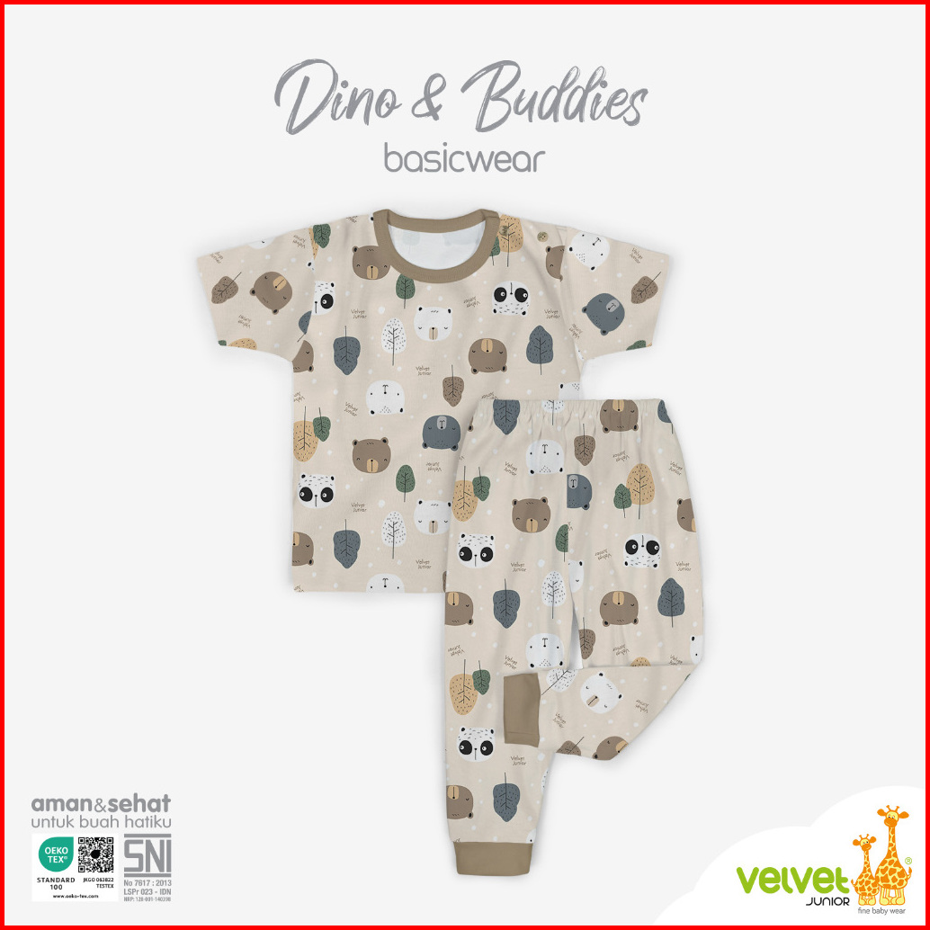 Velvet Junior Setelan Baju Anak Kancing Pundak Pendek Celana Panjang - Basicwear Dino Buddies