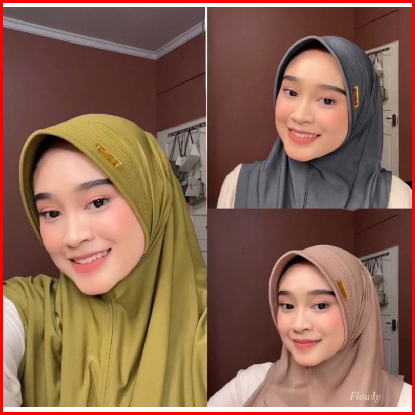 100rb Dapat 10pcs Paket Bergo Size M Jilbab Hamidah Label Besi Akrilik By Kholidah Collection