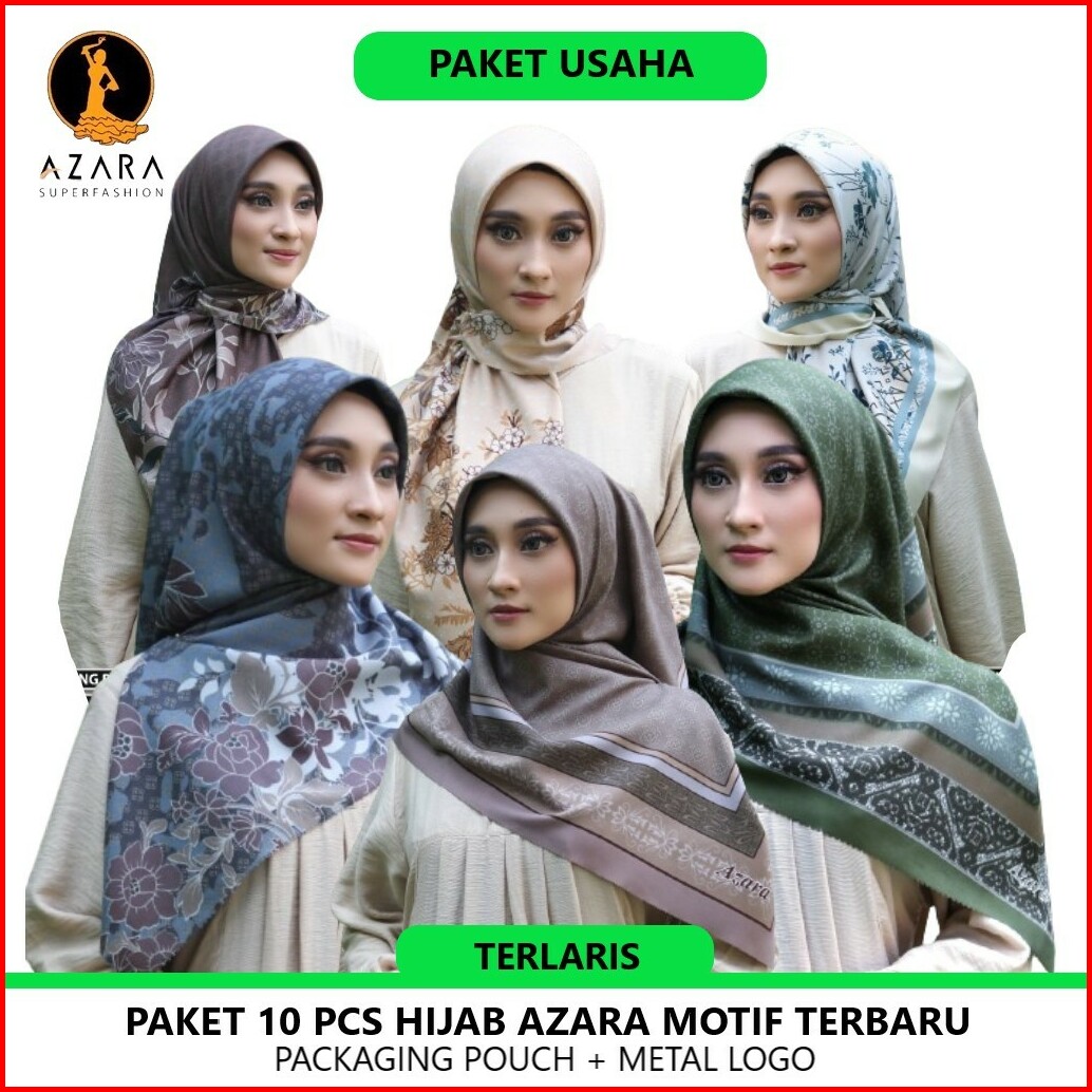 Paket 10 Hijab Segi Empat Azara Oskara Motif Laser Cut Packing Pouch Metal Logo Lc Scarf Azara Superfashion