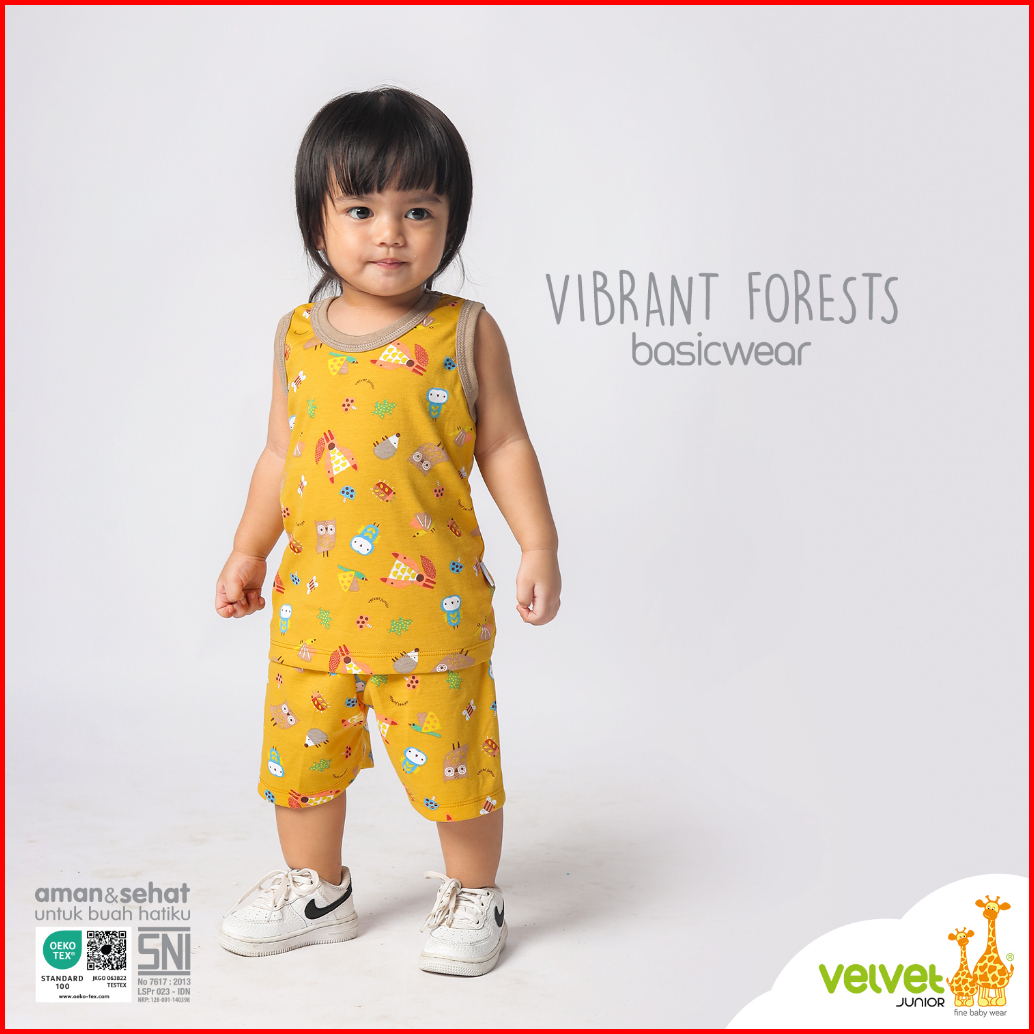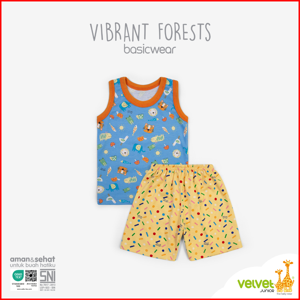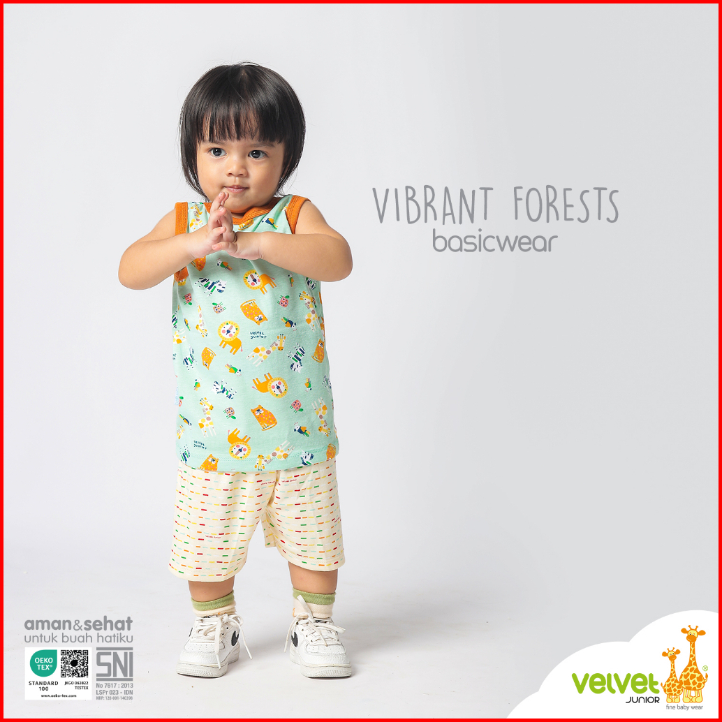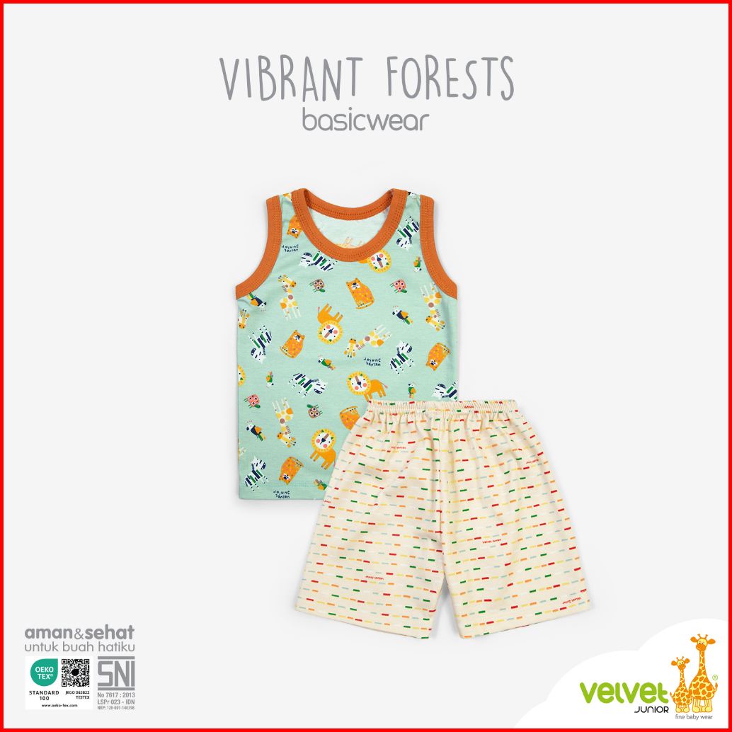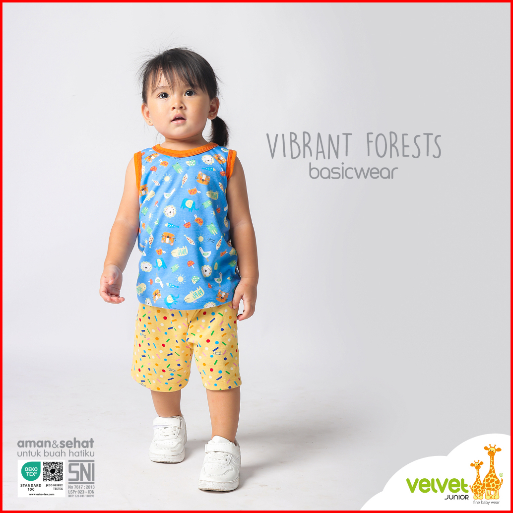 Velvet Junior Setelan Baju Anak Kutung Sleeveless Celana Pendek - Basicwear Vibrant Forests