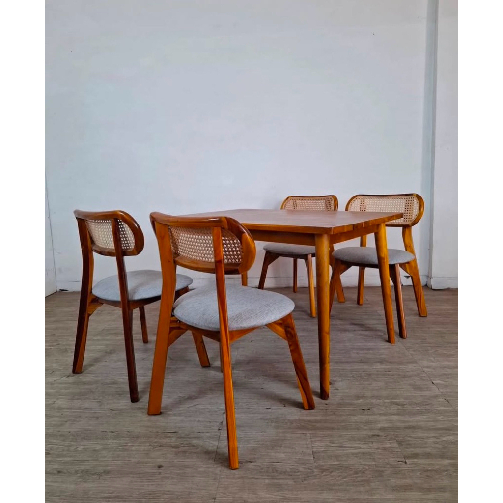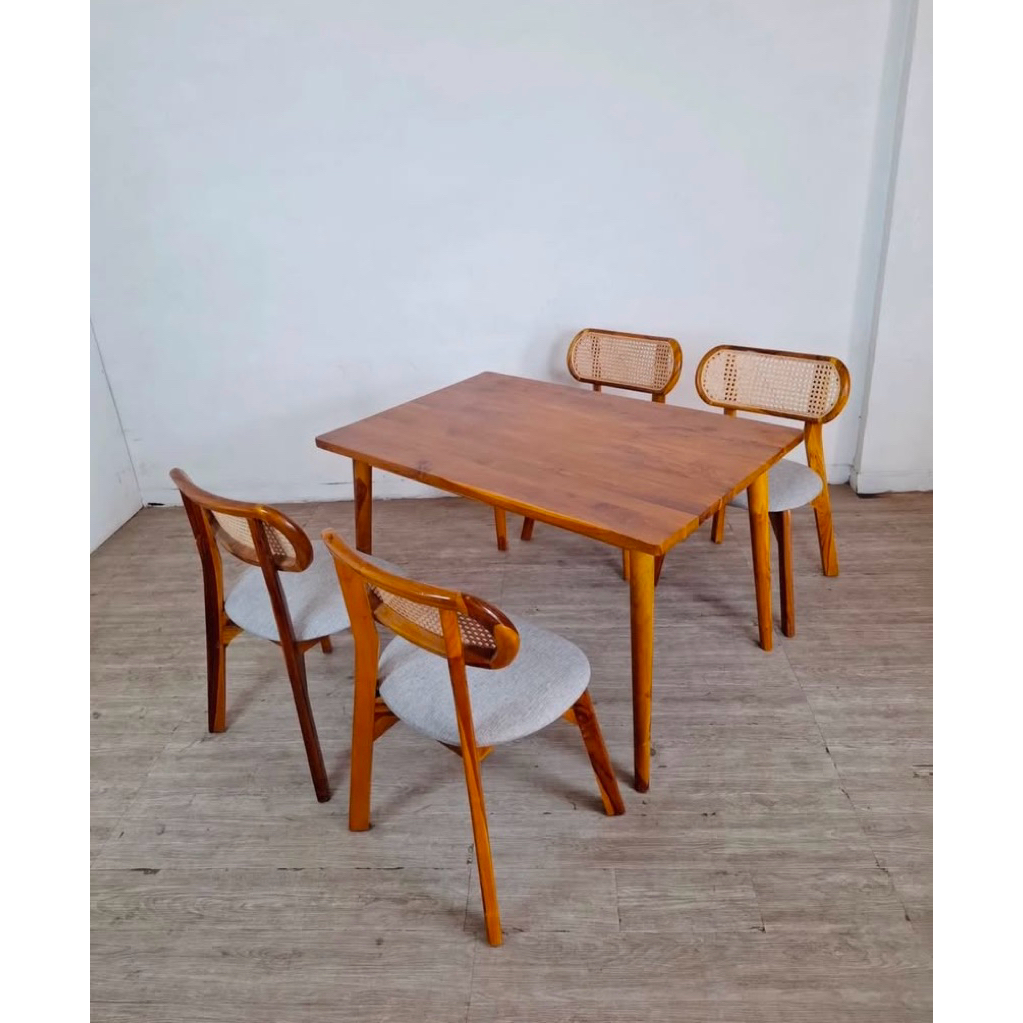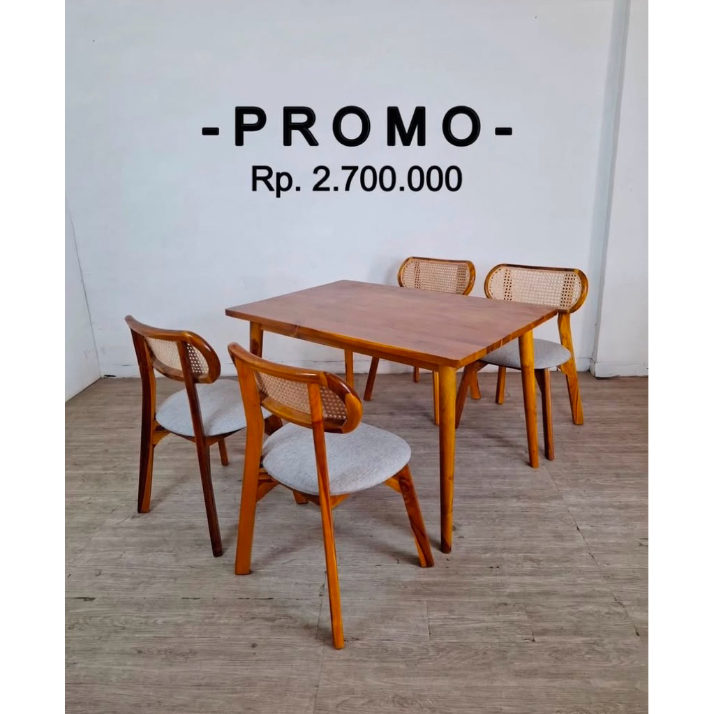 PROMO Set meja makan minimalis kayu jati sandaran rotan - meja makan - kursi teras - kursi kafe - kursi bar - meja kerja