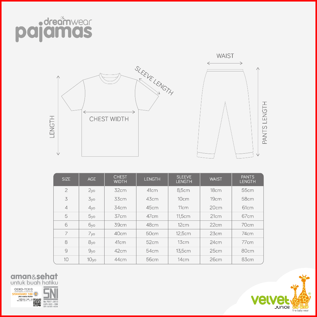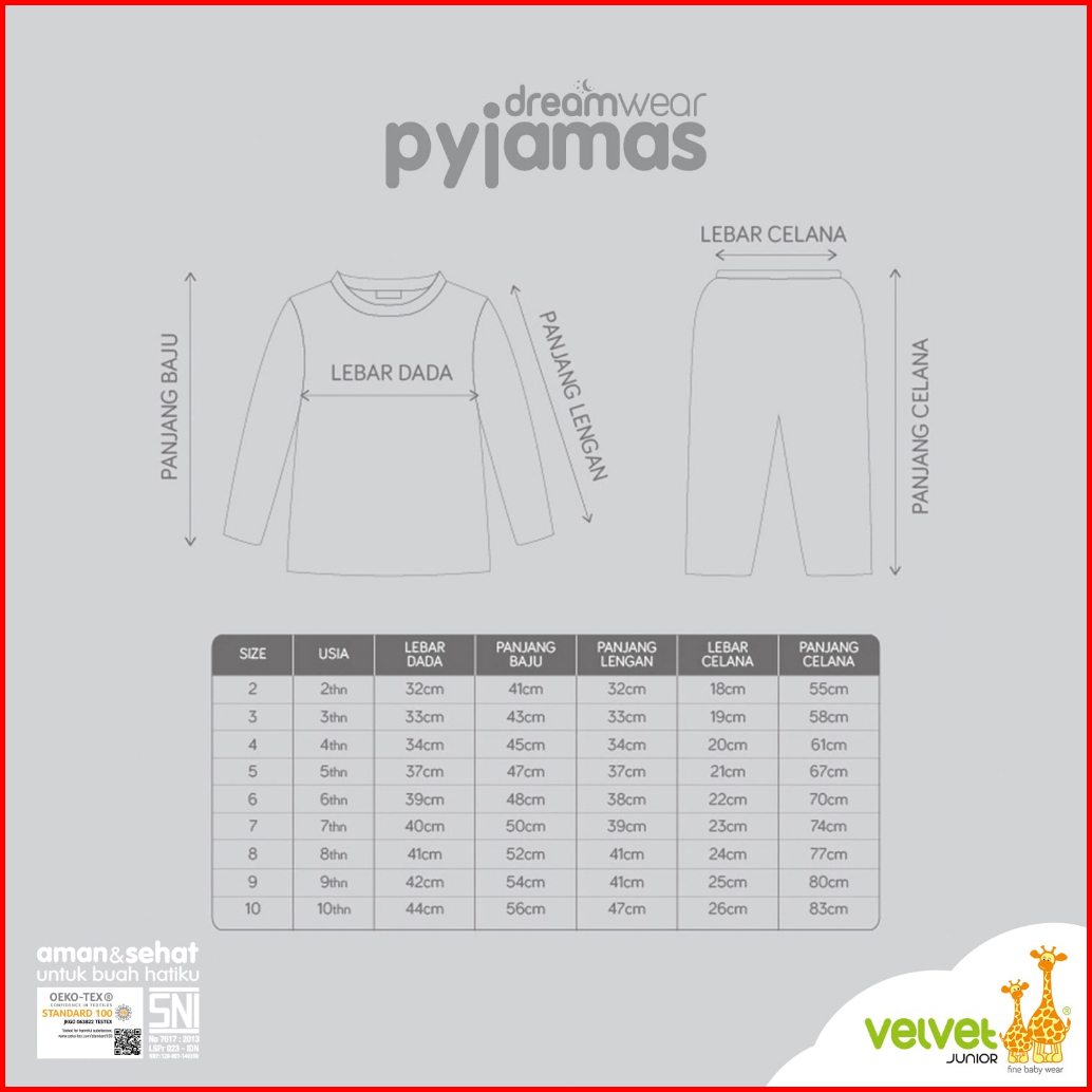 Velvet Junior Setelan Piyama Dreamwear Pendek Panjang 2-10 Motif Acak 1 Stel