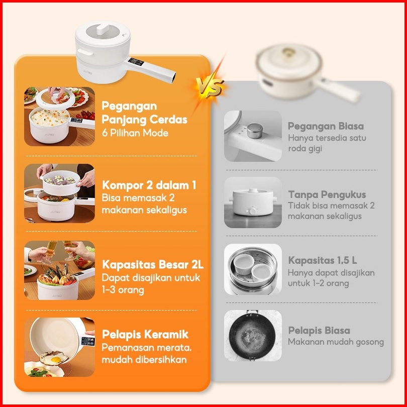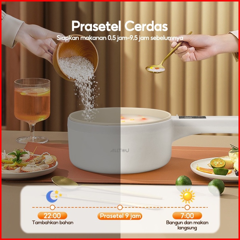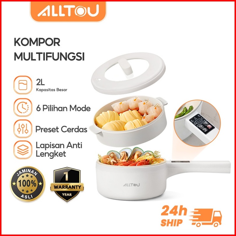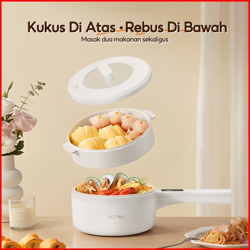 Alltou Panci Listrik Serbaguna 2l Multifungsi Steamer Panci Listrik Serbaguna Kompor Listrik Pintar Pelajar Pot Portable