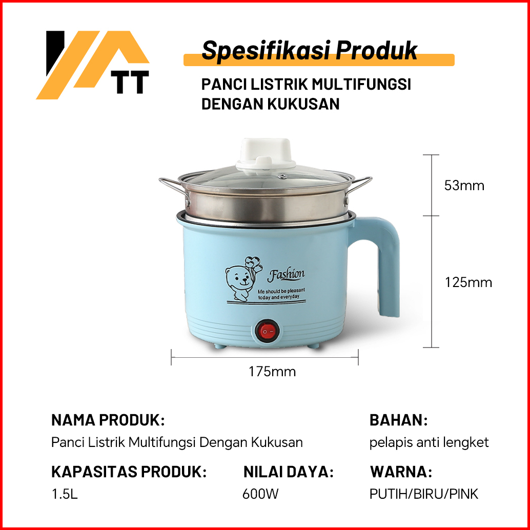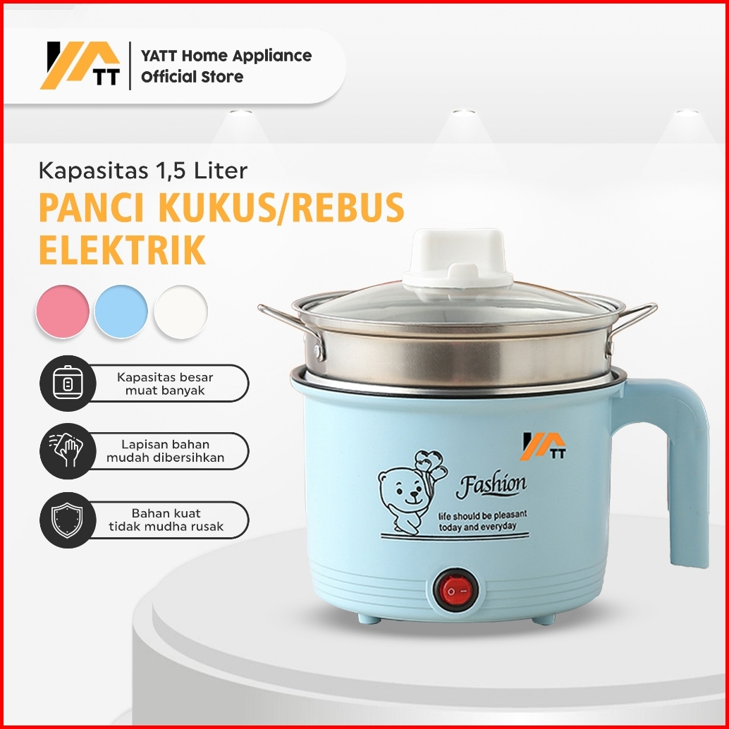 Yatt Panci Listrik Lapisan Keramik 1.5 L Elektrik Free Kukusan Stainless Rice Cooker Panci Goreng