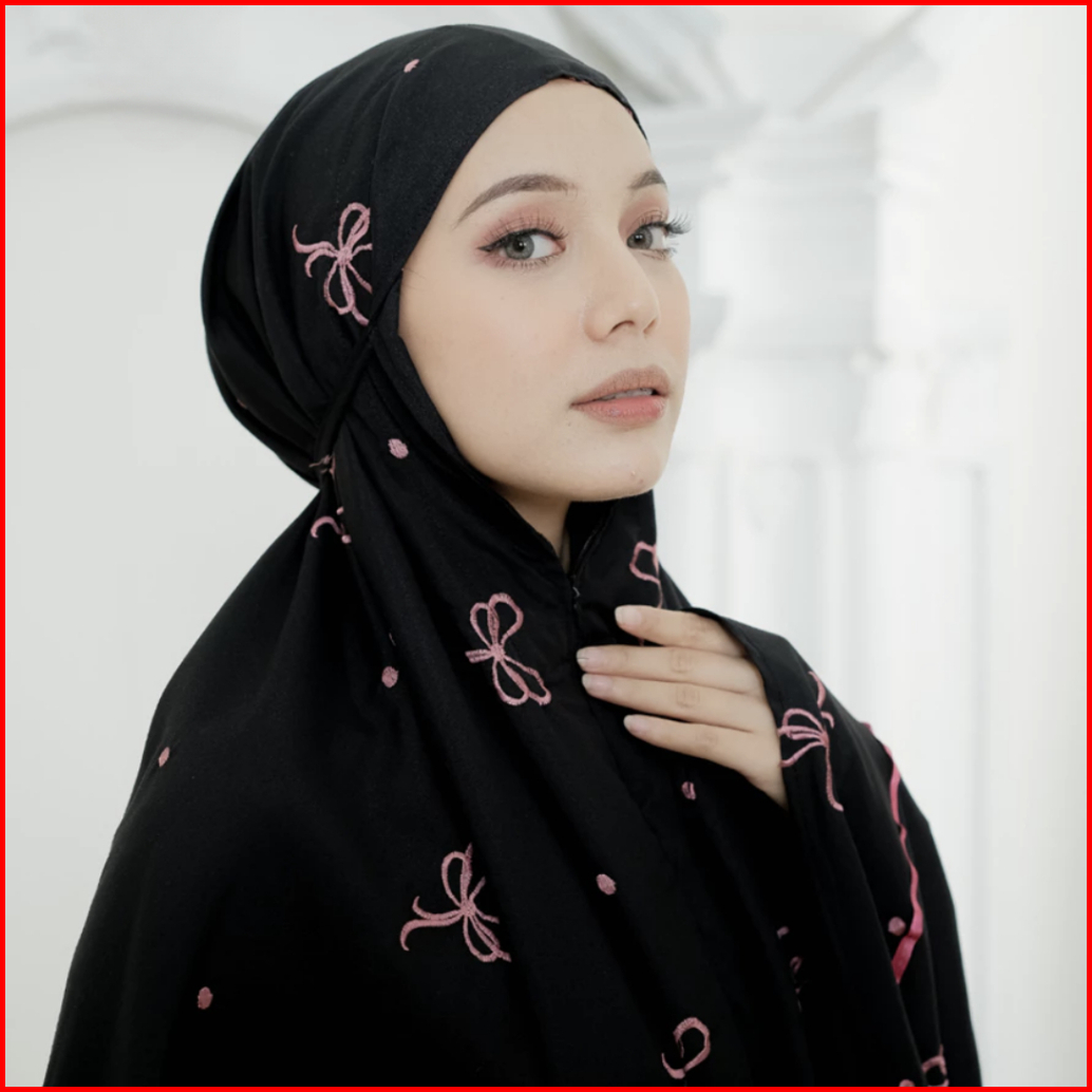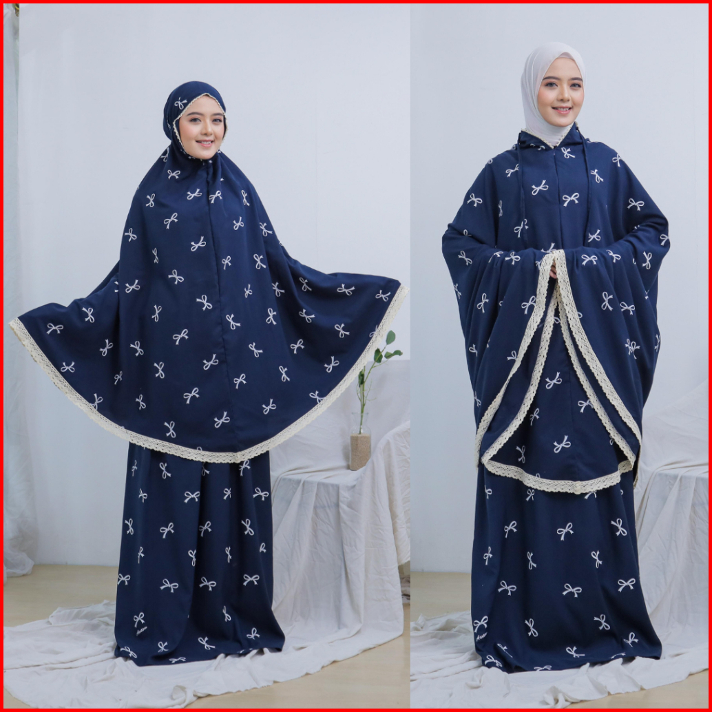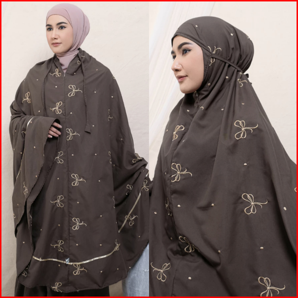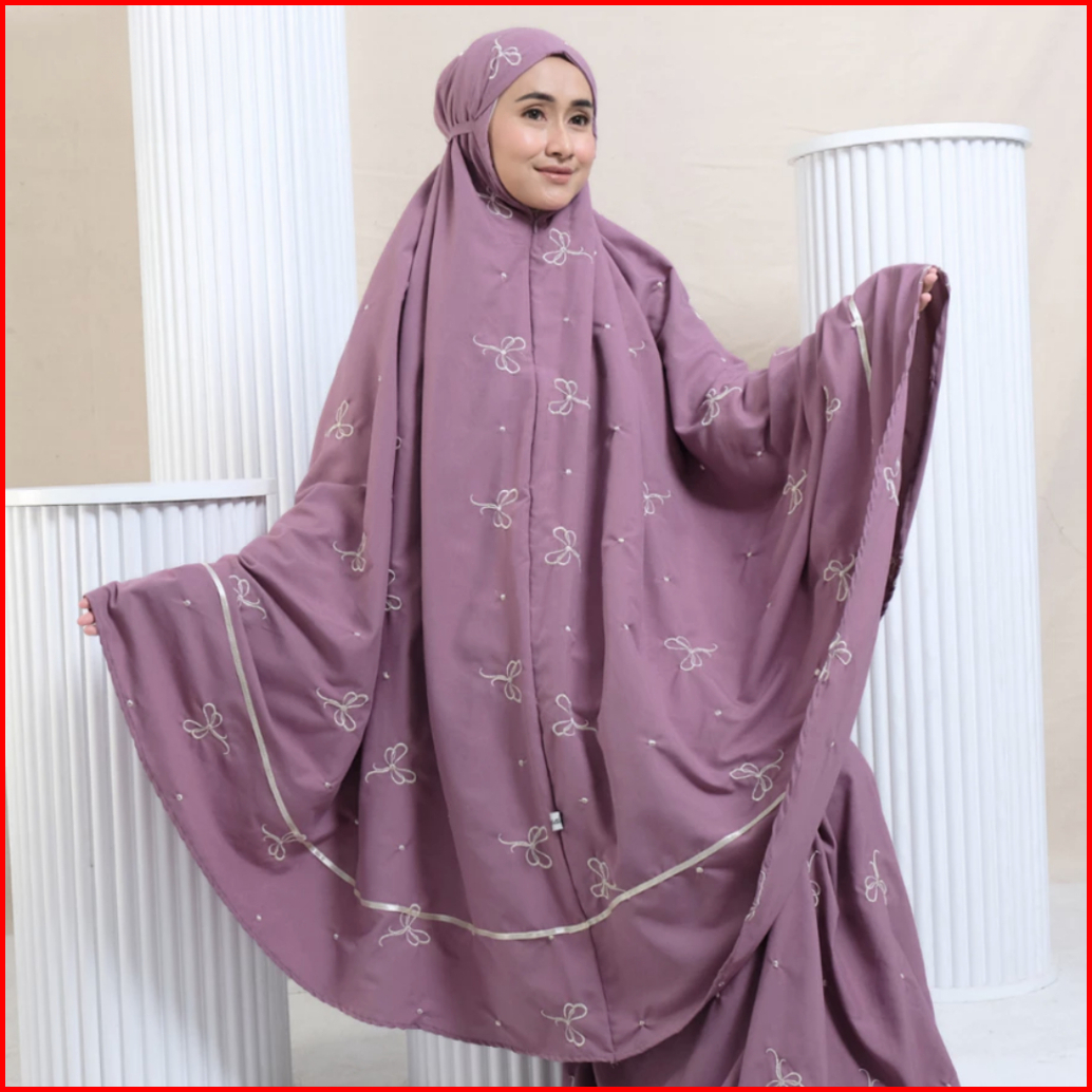 Mukena Coquette 2in1 Ribbon Pita Mukena Traveling Bordir Ribbon Pita Mewah Mukena Travel Wanita