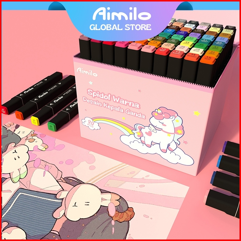 Aimilo Spidol Warna Warni 1 Set Sketch Marker 2 Tips Kartun Marker Set 24 36 48 60 80 Warna