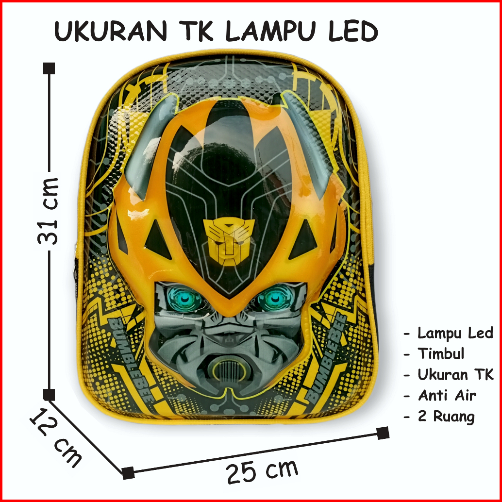 Tas Ransel Anak Bumblebee Laki Laki Lampu Nyala Led Timbul 3d Untuk Tk Paud
