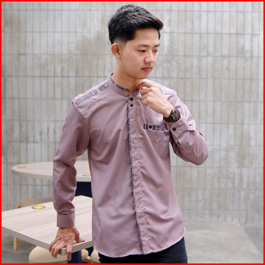 Baju Koko Pria El Rumi Lengan Panjang Berkombinasi Batik Motif New Yisunsin Lilac Terbaru