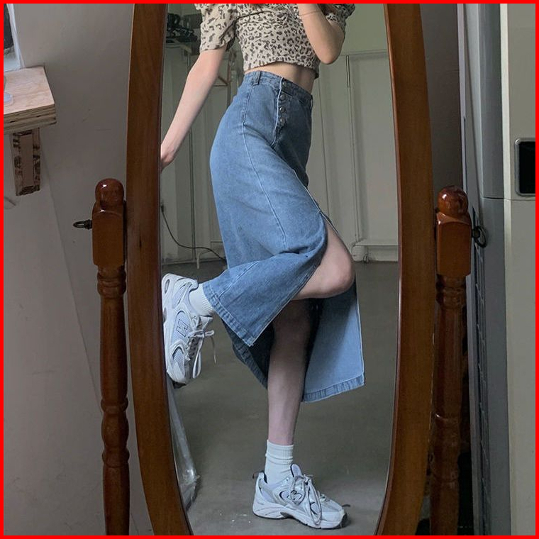 Emily Rok-rok Midi A-line Denim Highwaist Import