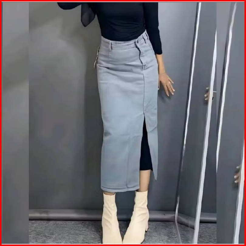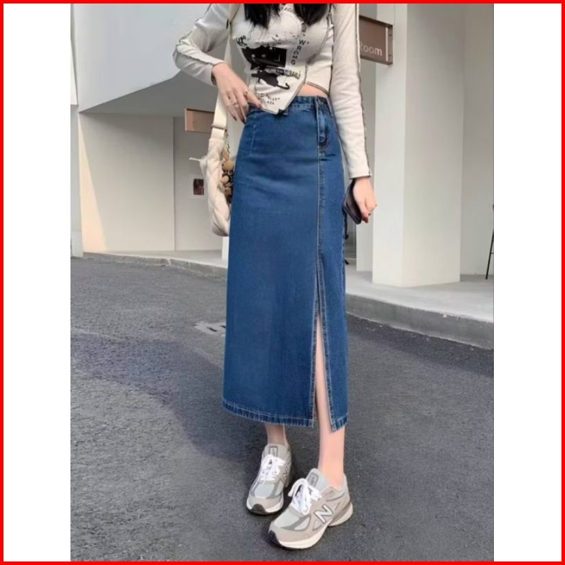 Rok Jeans Highwaist A-line Belah Samping Rok Jeans Model Korean Style