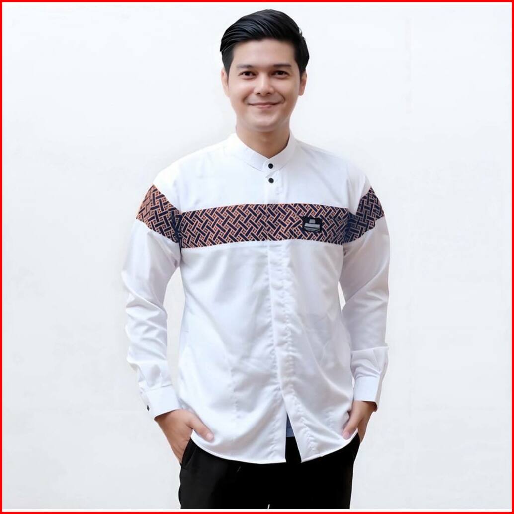 Baju Koko Pria Dewasa Lengan Panjang Motif Kobata Qynang Kombinasi Batik Terbaru