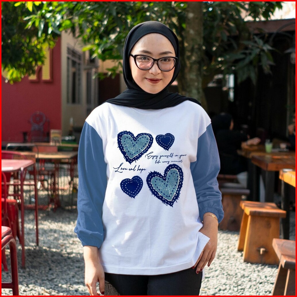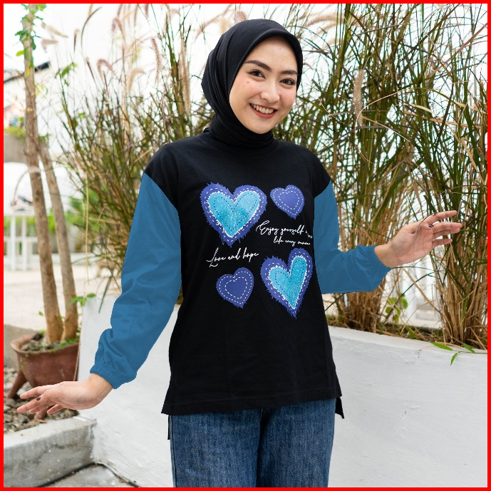 Cottend Oversized Love Lengan Kerut 7 8 Bahan Katun Combed Tebal Nyaman Dipakai