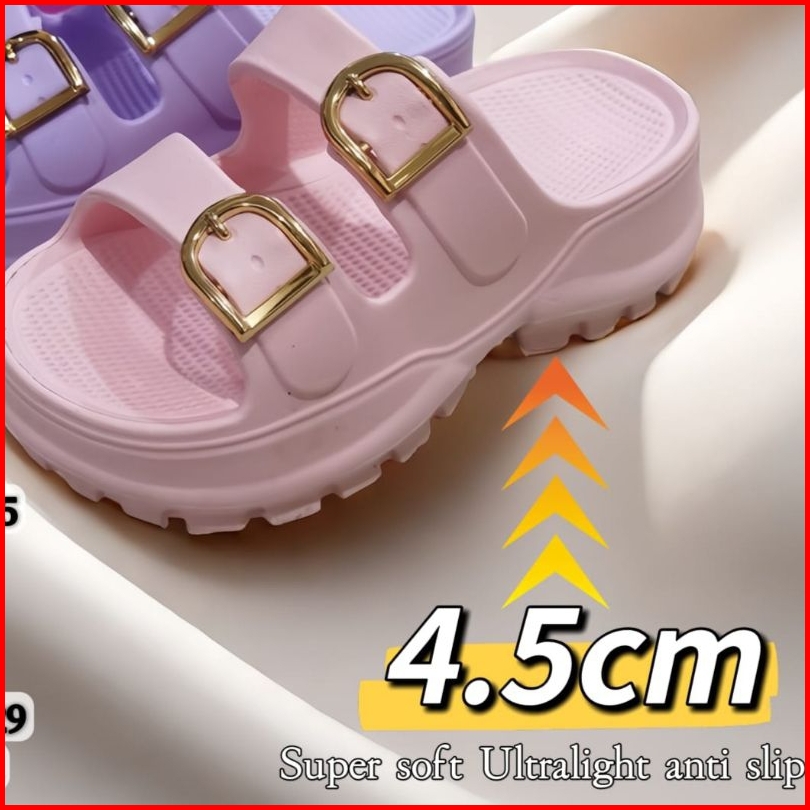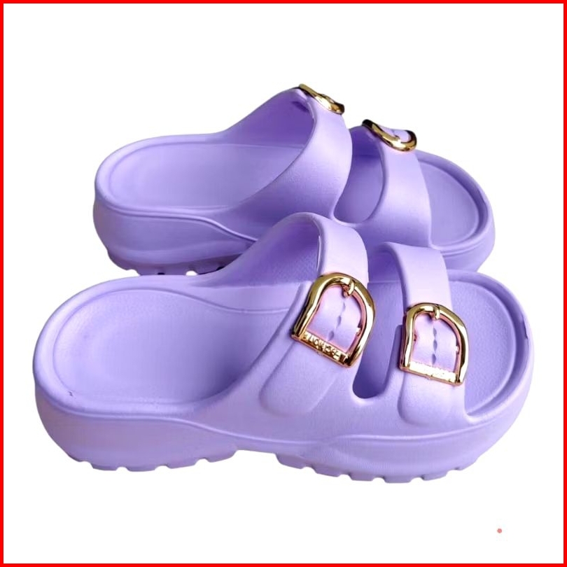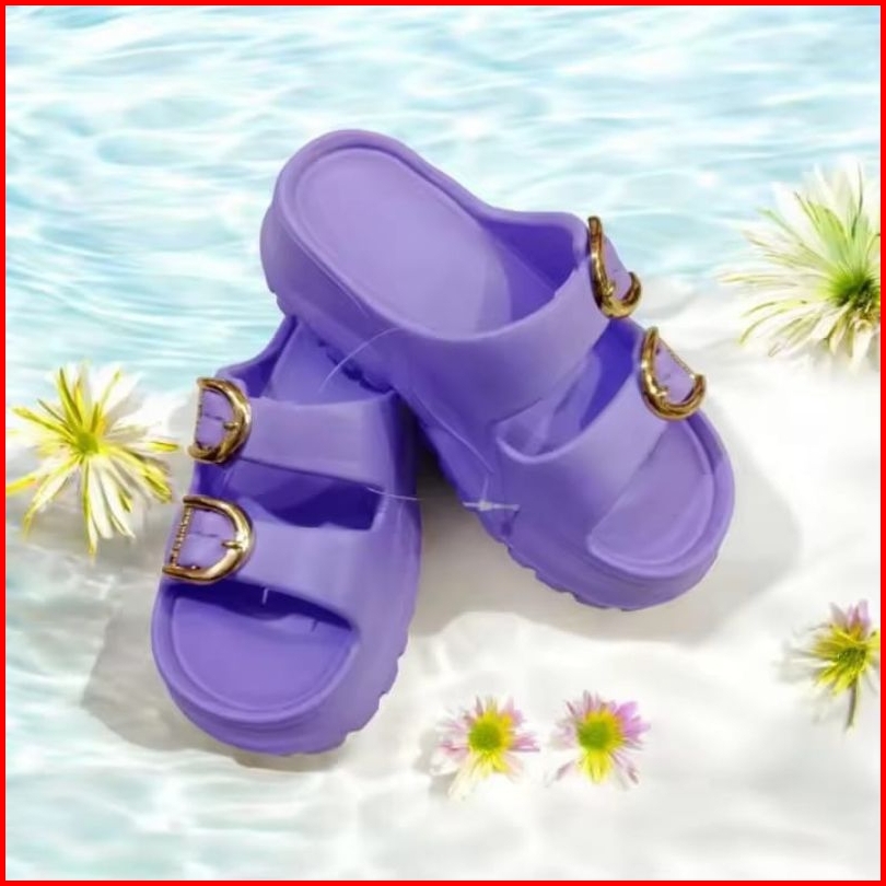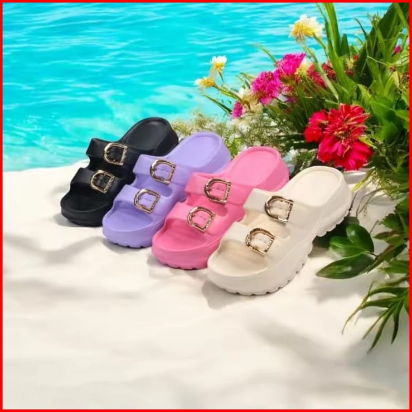 Sandal Selop Wedges Anak Perempuan Doble Strap Motif Gesper Slip On Eva Rubber Sandal Wedges Anak Cewek Kekinian Sandal