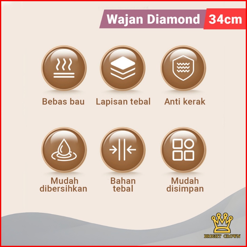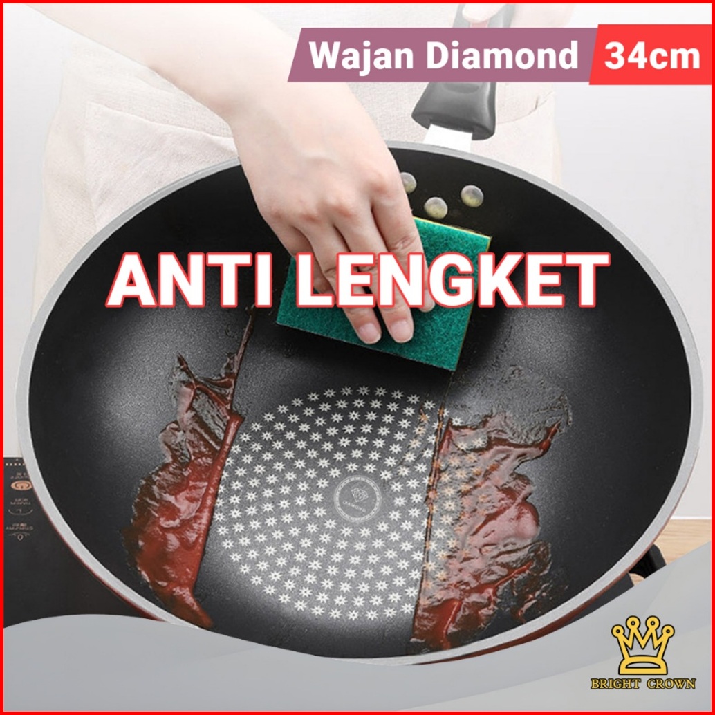 Bright Crown Wajan Penggorengan Wok Diamond 34cm Dengan Pegangan Anti Panas Fry Pan Anti Gores Tebal