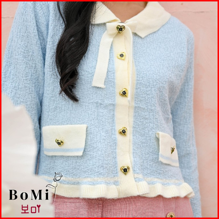 Bomi - Enji Top Cardigan Love Button Cardi Sweater Atasan Rajut Wanita Ribbon Long Sleeve