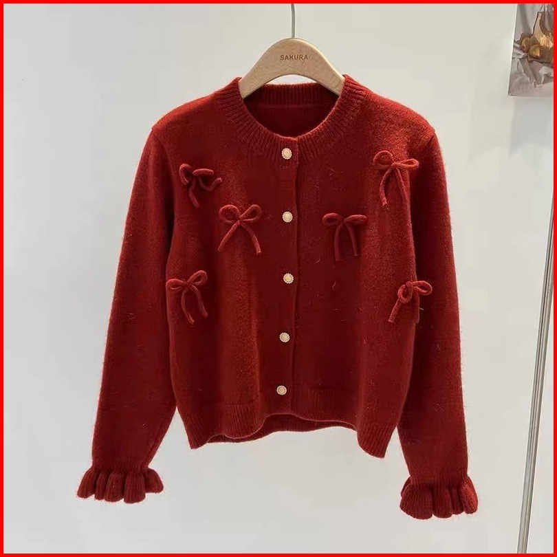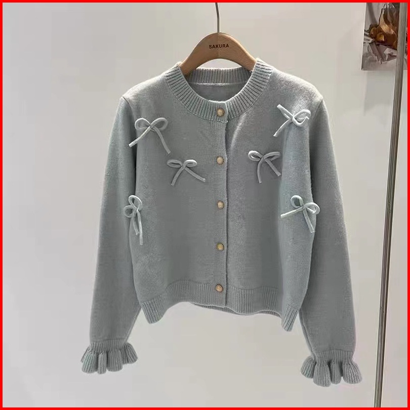 Joveline - Cardigan Pita Tangan Ruffle Kancing Mutiara Aaq1