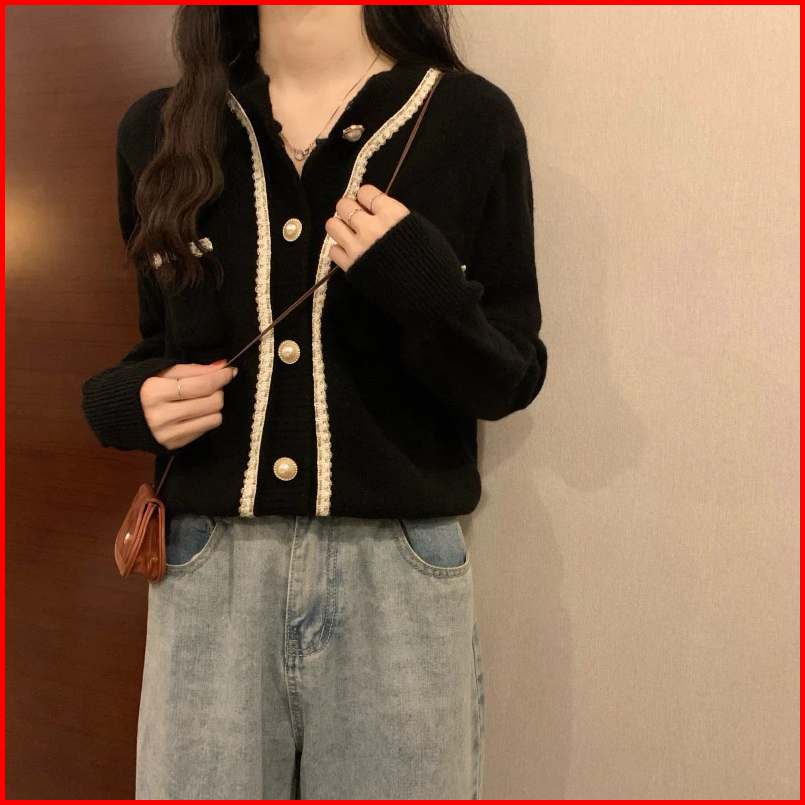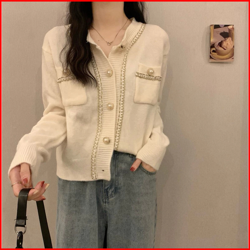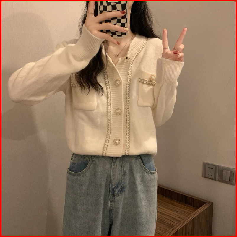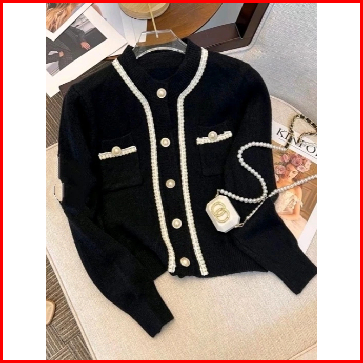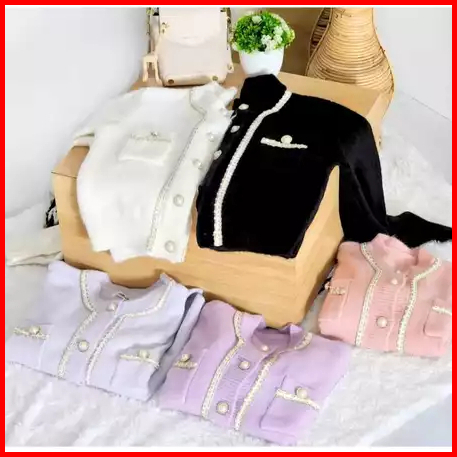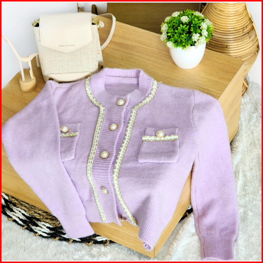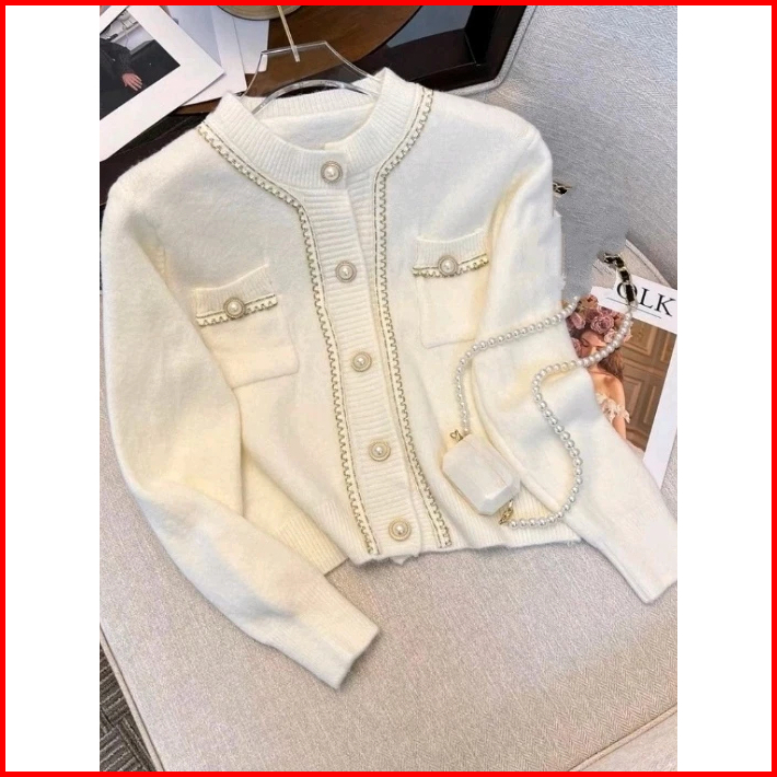 Cardigan Wol Rajut Korean Style List Full Mutiara Cardigan Wol Rajut Bahan Lembut Kancing Mutiara