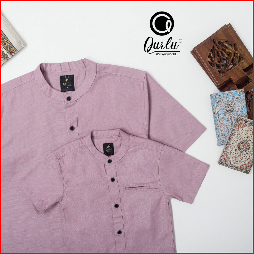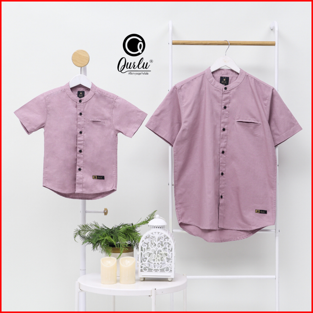 Qurlu - Kemeja Koko Dewasa Anak Warna Nude Purple Baju Couple Ayah Dan Anak Laki-laki Baju Koko Pria