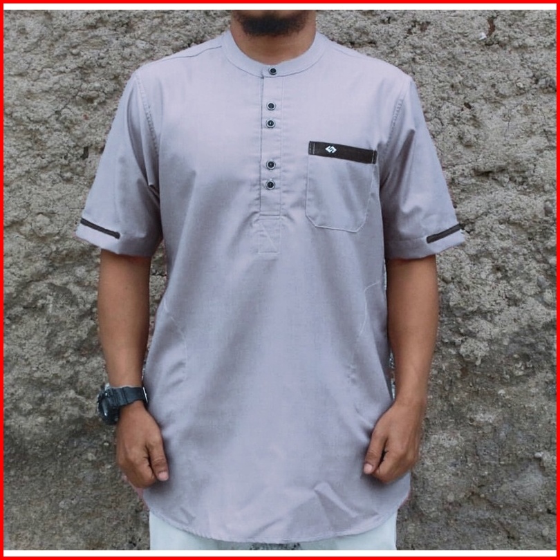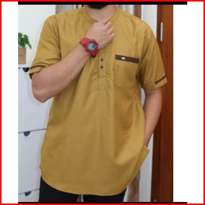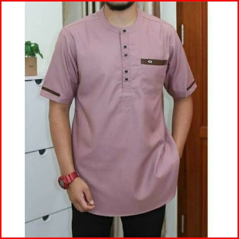 Baju Koko Kurta Lengan Pendek Variasi Strip Bahan Toyobo Fodu