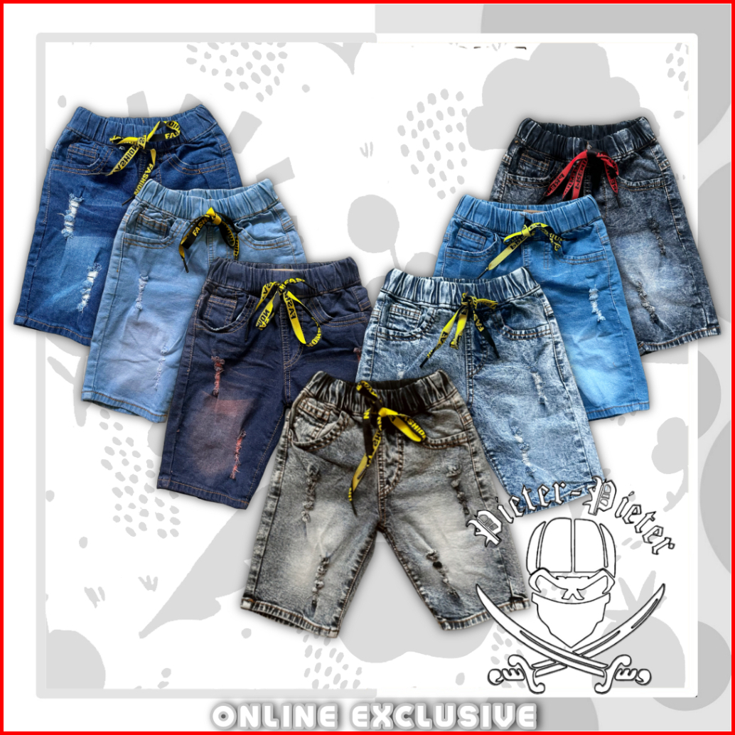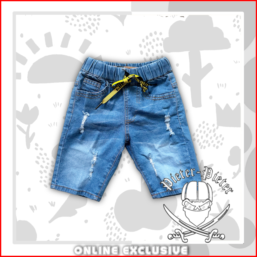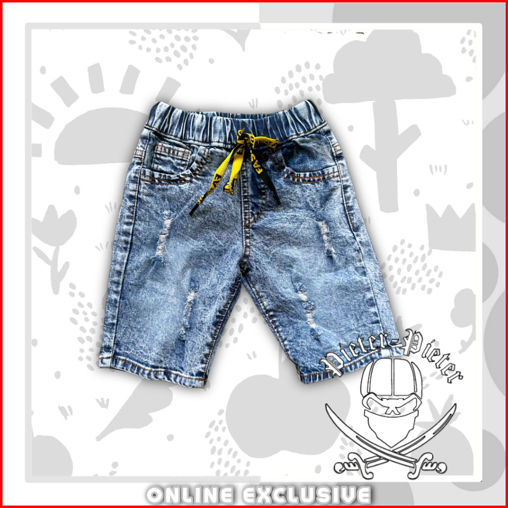 Celana Jeans Pendek Anak Model Ringkel Sobek Rantai Tali Pinggang Cowok Cewek Usia 3-12 Tahun