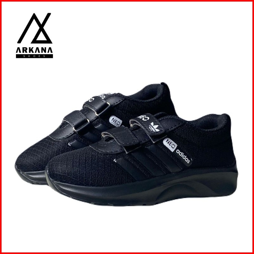 Sepatu Anak Sekolah Hitam Adidas Nike Bordil Usia 4-15 Ukuran 27-38 Velcro Tanpa Tali Terlaris Terbaik