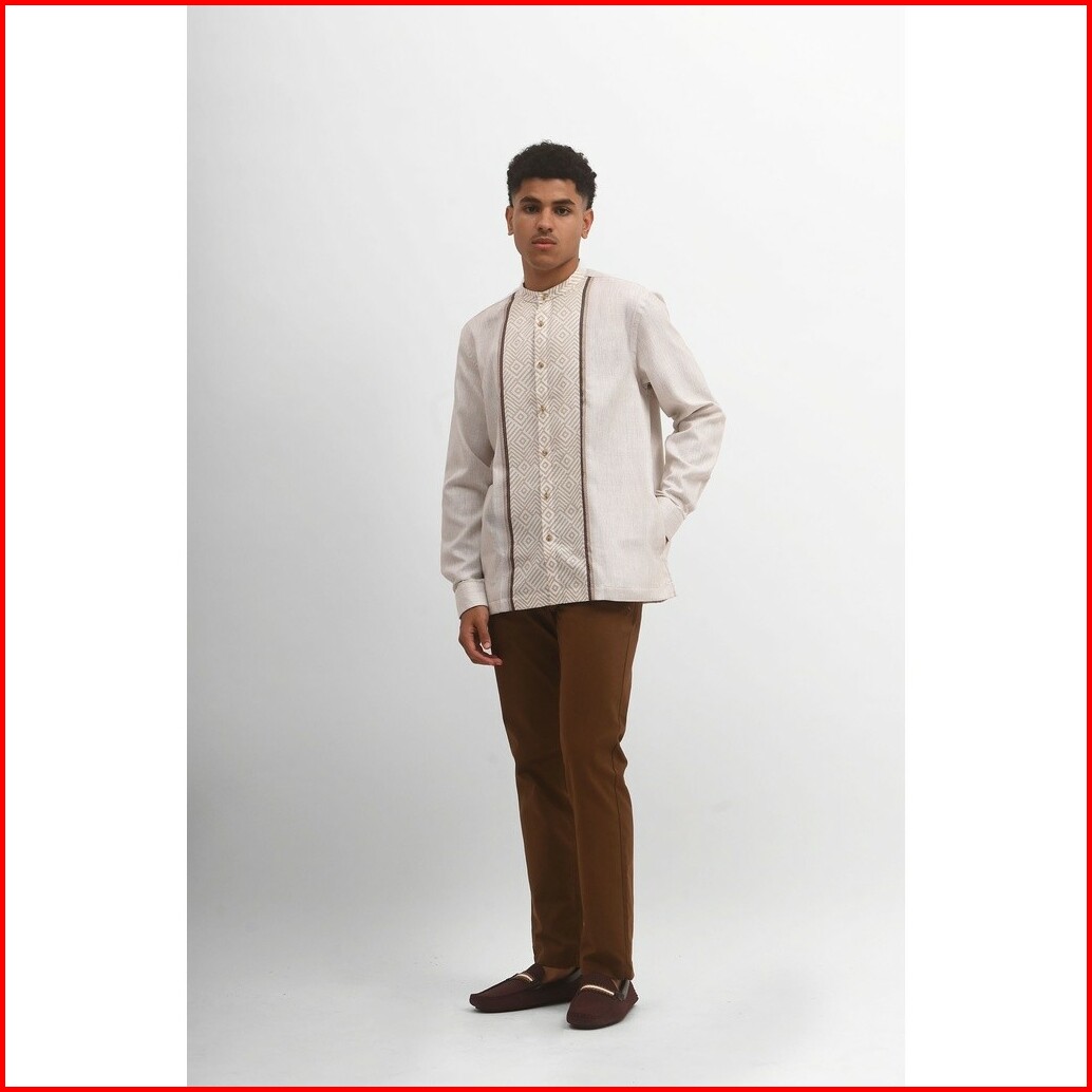 Manzone - Kemeja Koko Lengan Panjang Pria Asad Comfort Fit - White