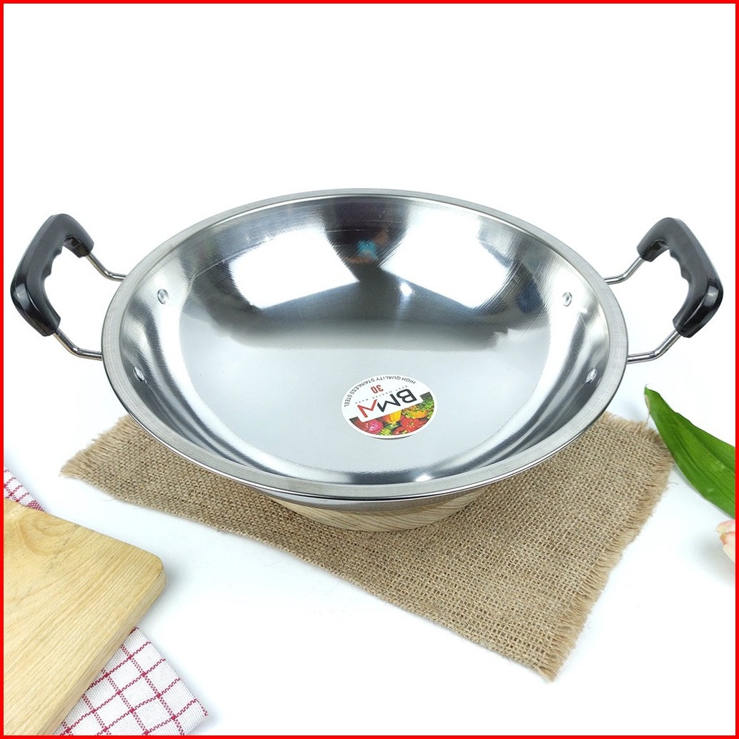 Smj - Wajan Premium Wajan Penggorengan Kuali Wok Pan Pan Gagang Stainless Steel Tebal Penggorengan Murah