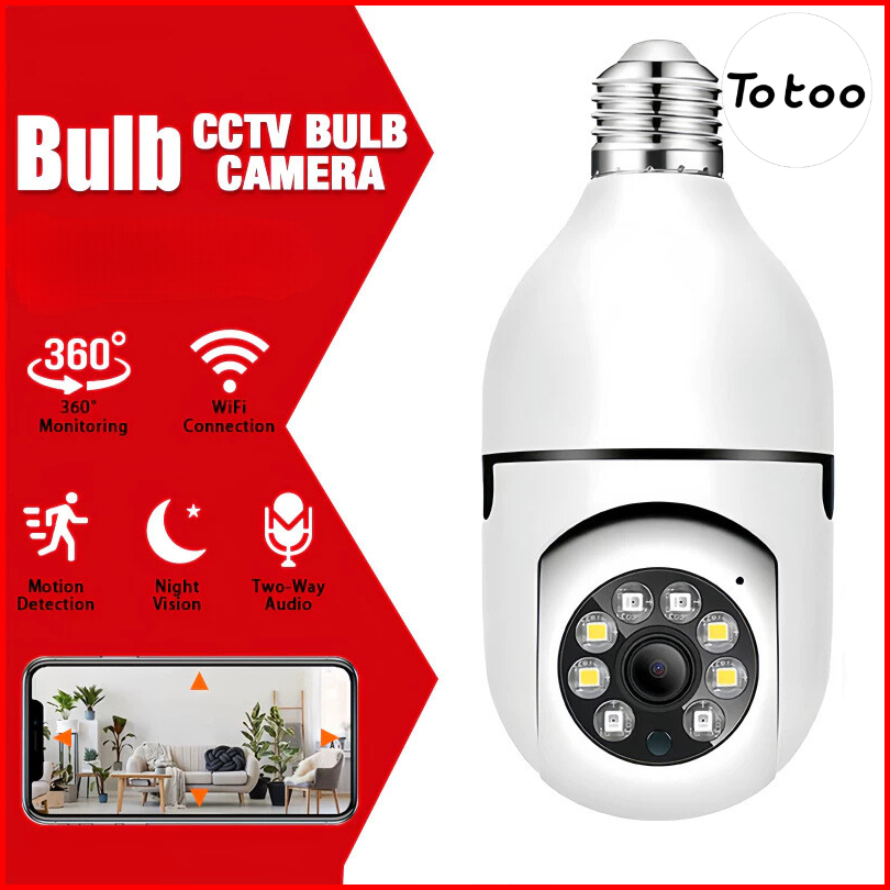 Totoo Cctv V380 Pro Outdoor Bohlam Ip Camera Kamera Wifi Jarak Jauh Lewat Hp 360 Wide 1080p Hd Cctv Lampu