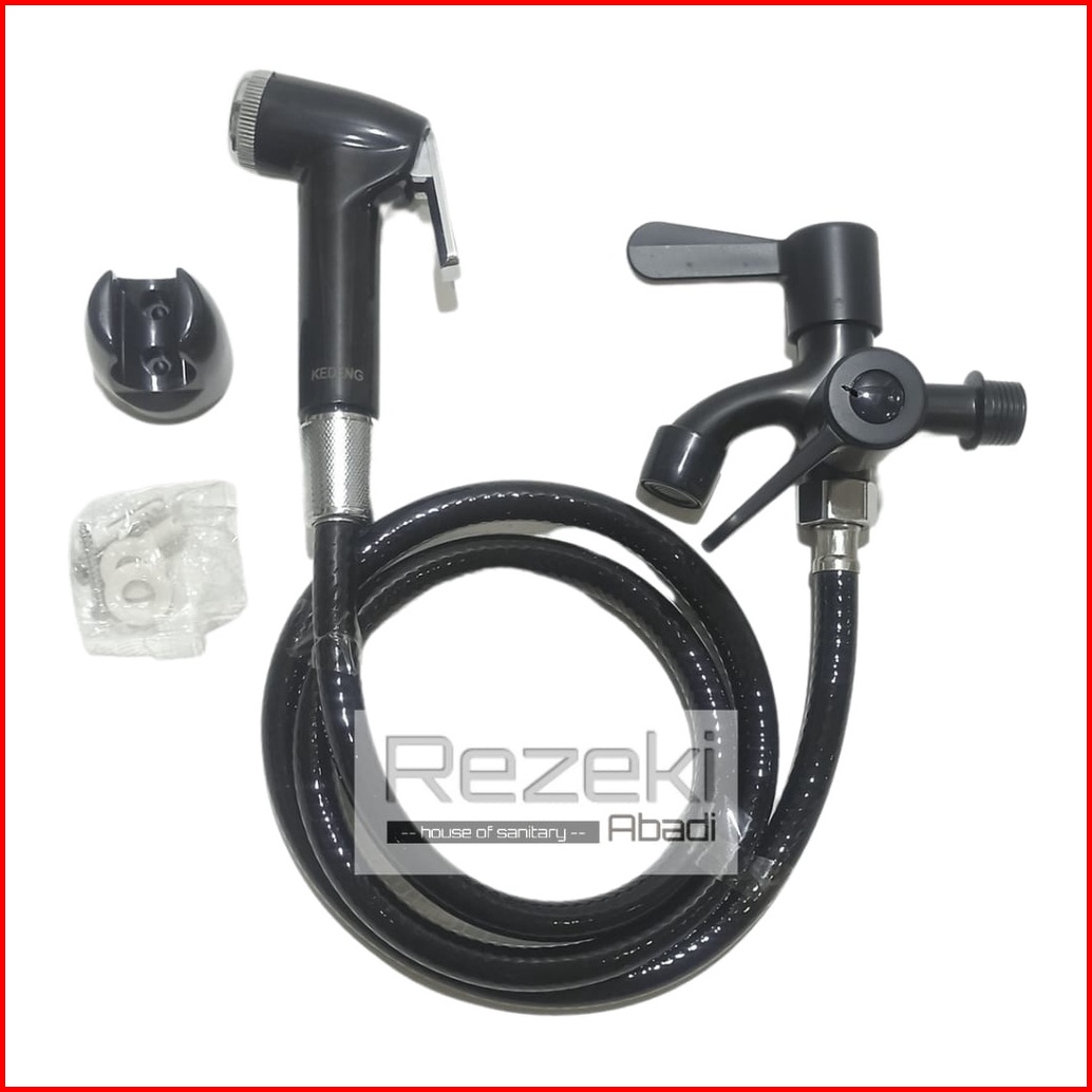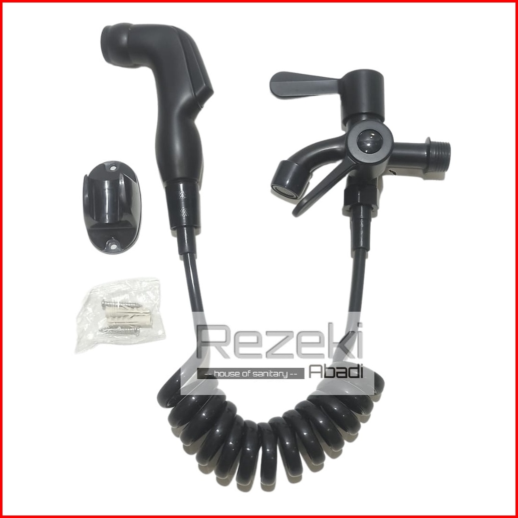 Paket Bundling Jet Shower Komplit Kran Cabang Hitam Series - Shower Kloset - Kran Cabang Double - Jet Kloset