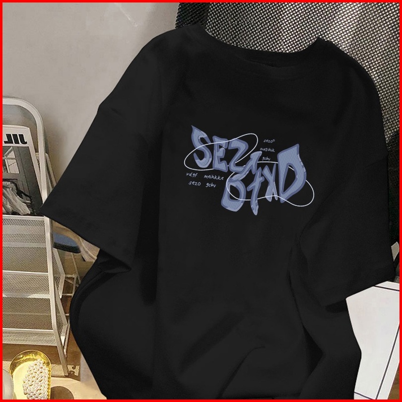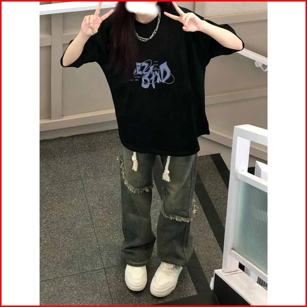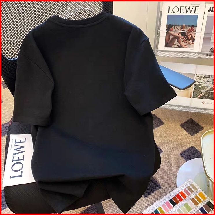 Po Floret T Shirt Oversize Lengan Pendek Kaos Letters Katun Murni Simple Style Wanita Top