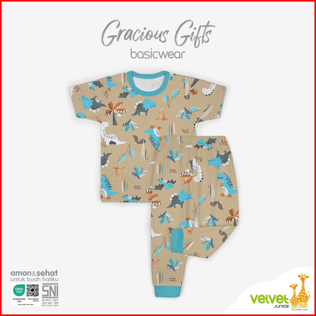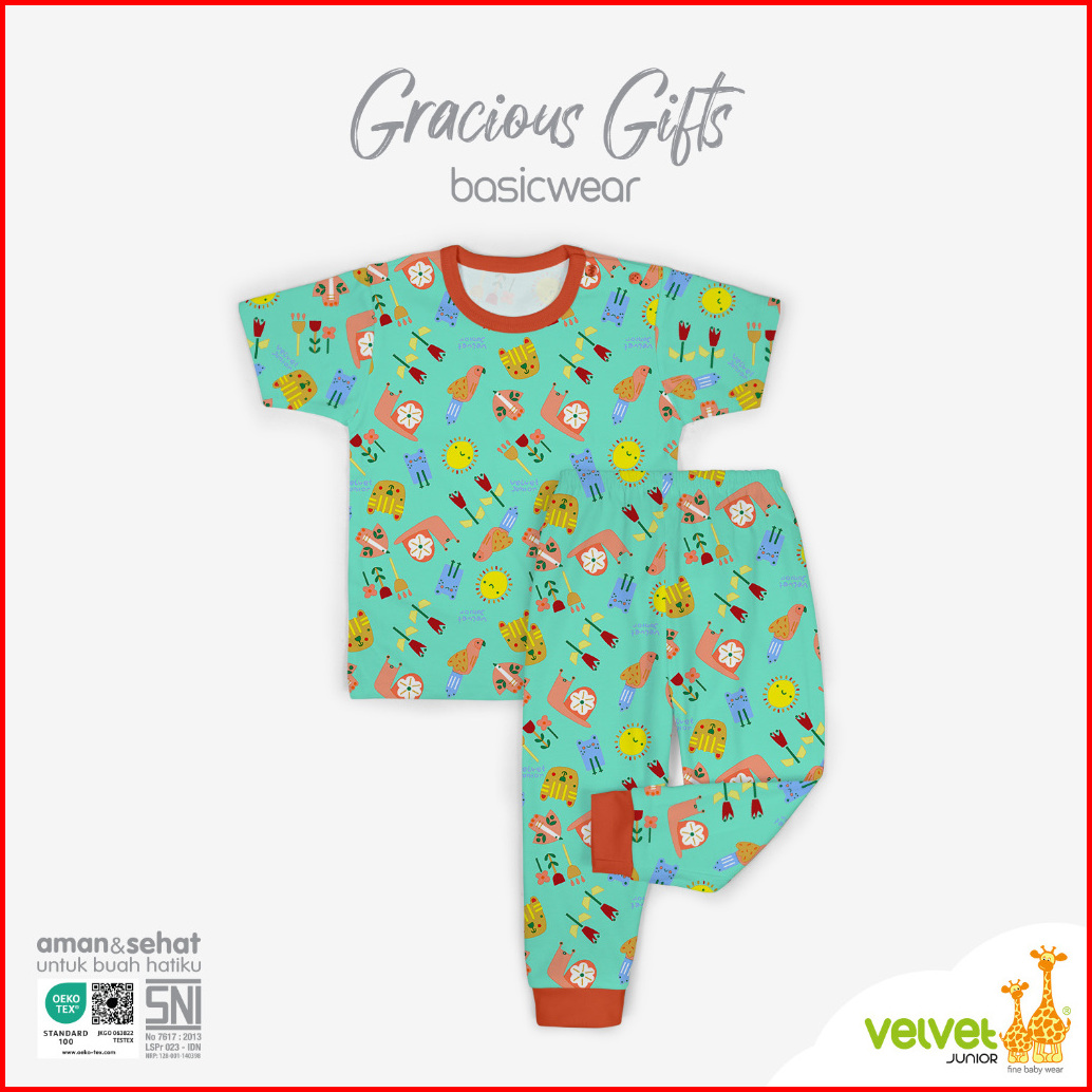 Velvet Junior Setelan Baju Anak Kancing Pundak Pendek Celana Panjang - Basicwear Gracious Gifts