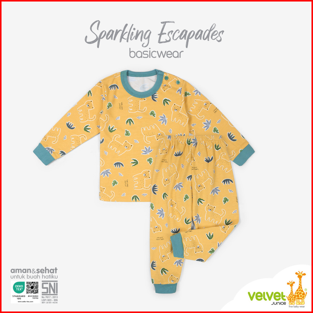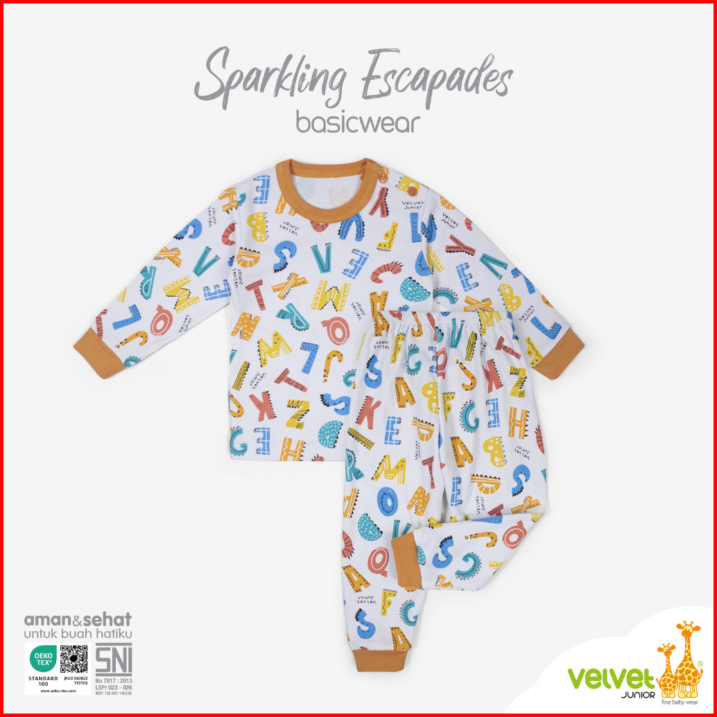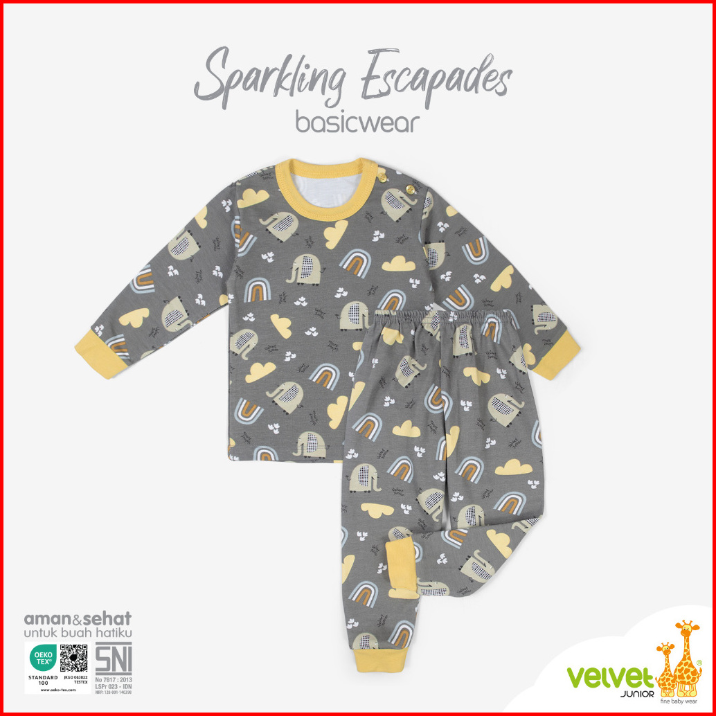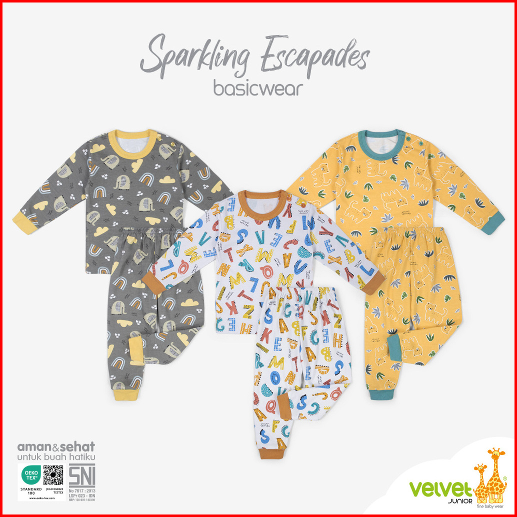 Velvet Junior Setelan Baju Anak Kancing Pundak Panjang Celana Panjang - Basicwear Sparkling Escapades Series