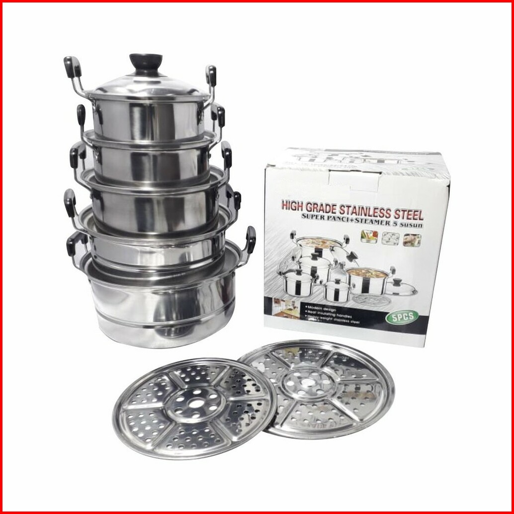 America High Pots Panci Set 5 Pcs 2 Steamer Kingko - Homelux - Happy