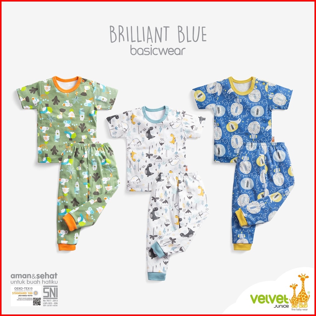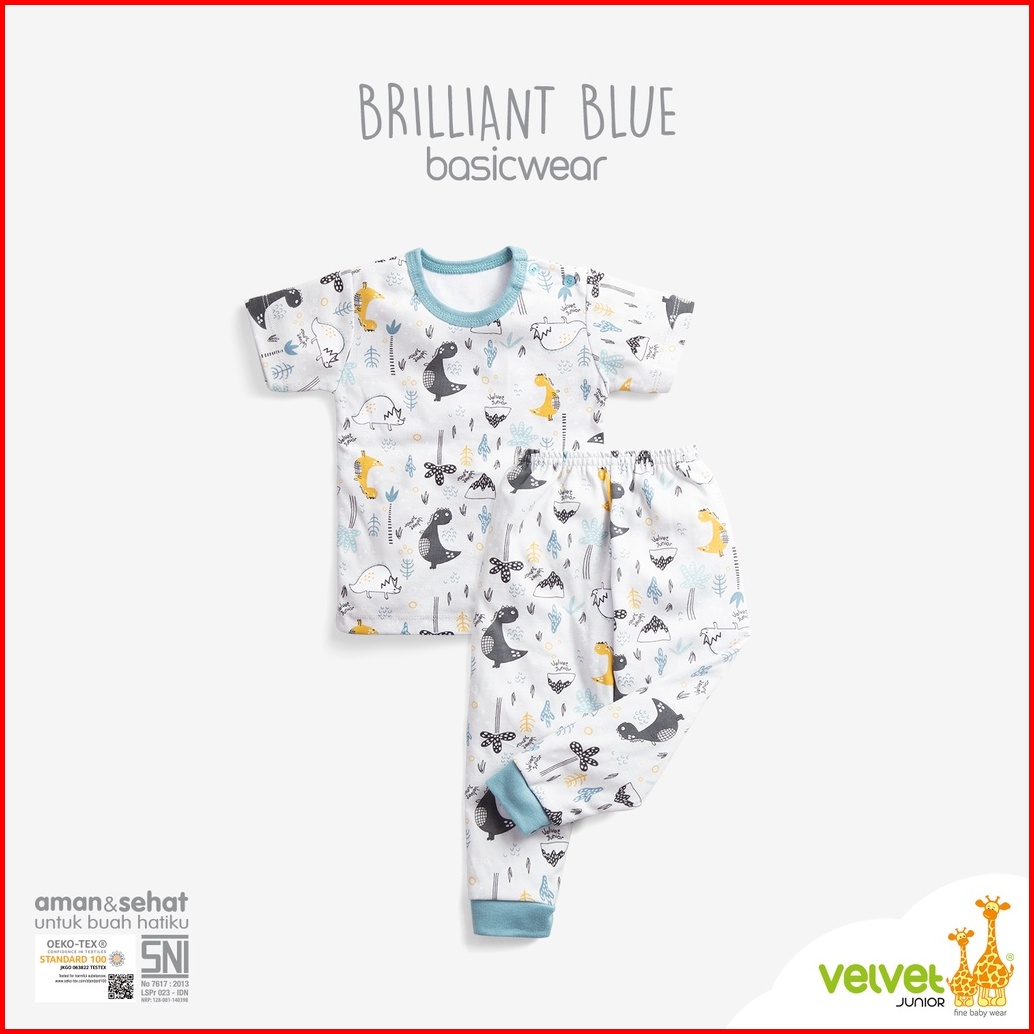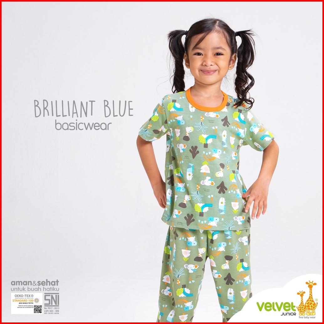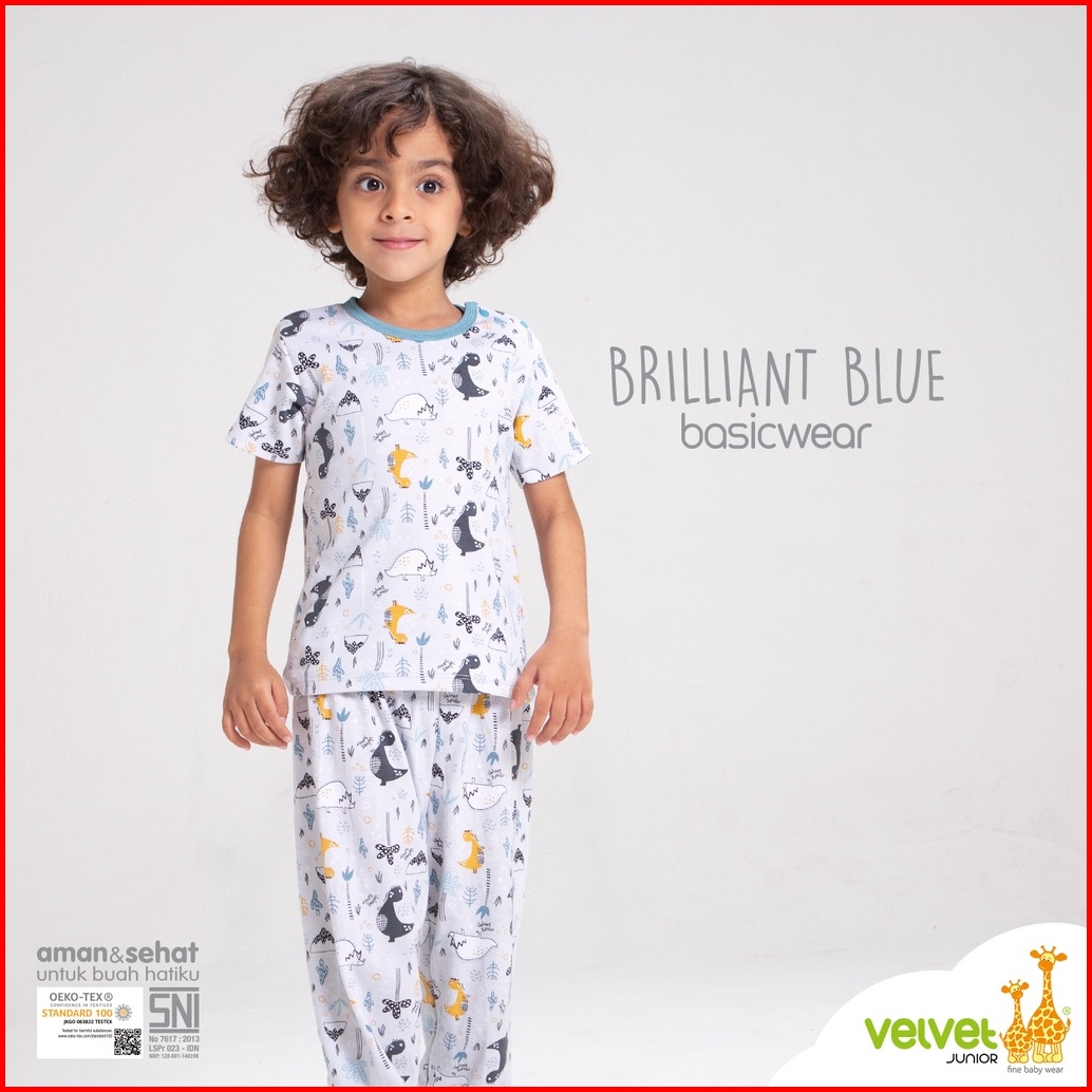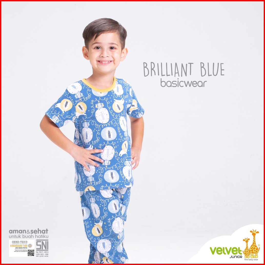 Velvet Junior Setelan Baju Anak Kancing Pundak Pendek Celana Panjang - Basicwear Brilliant Blue