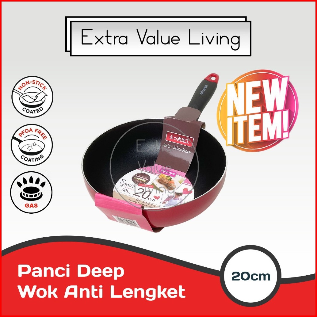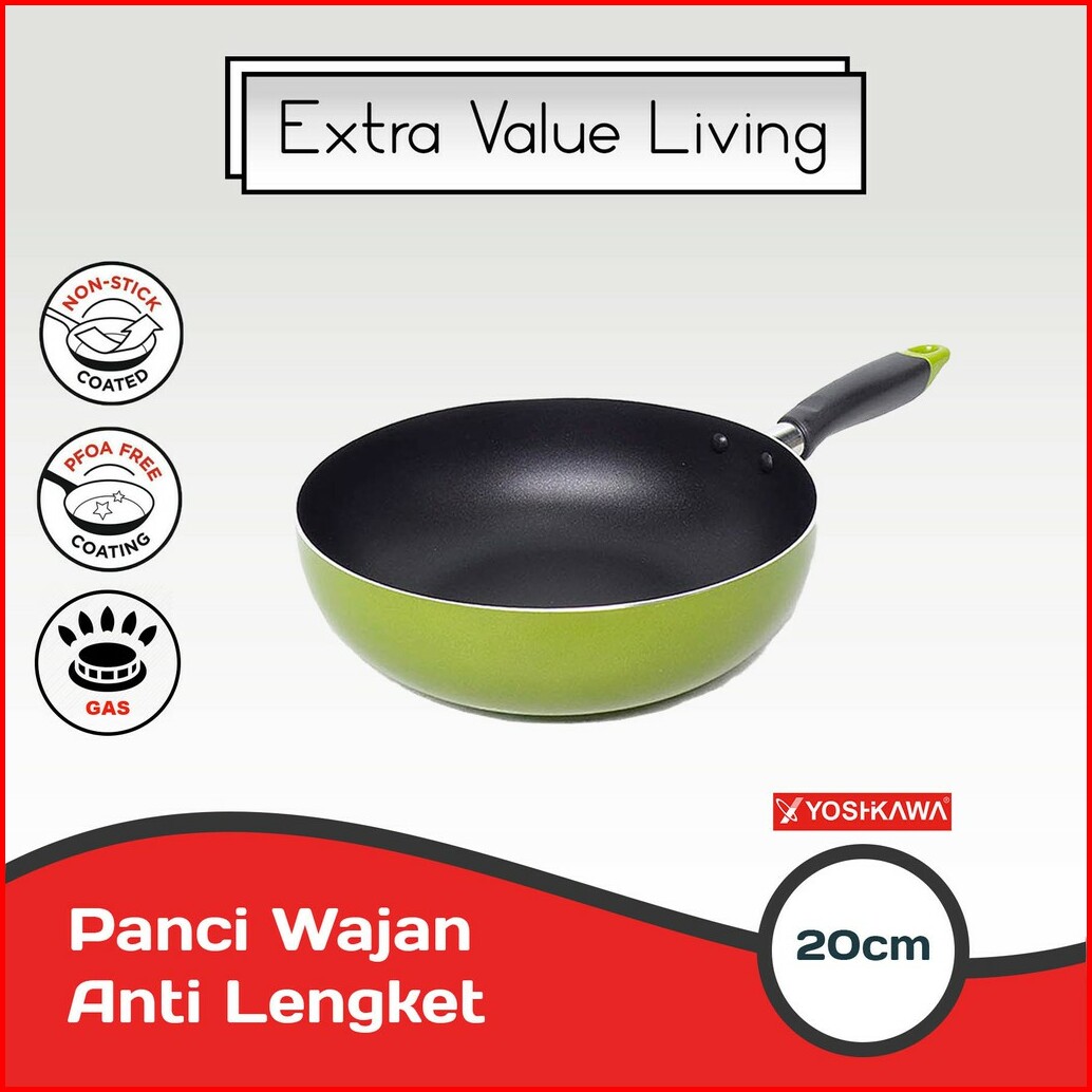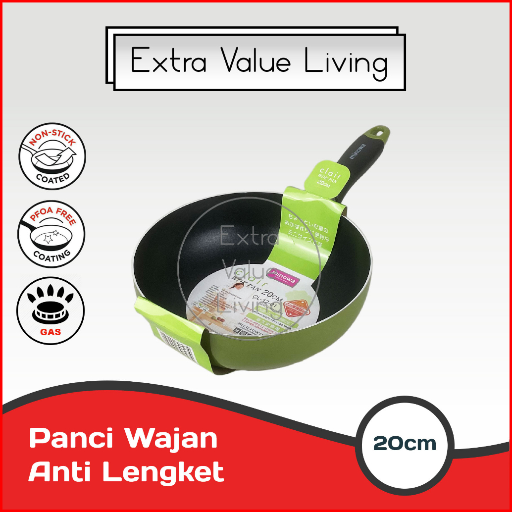 Minowa Panci Anti Lengket Wajan Tumis 20 Cm Wok Pan Evl-cl-12-01 Hijau