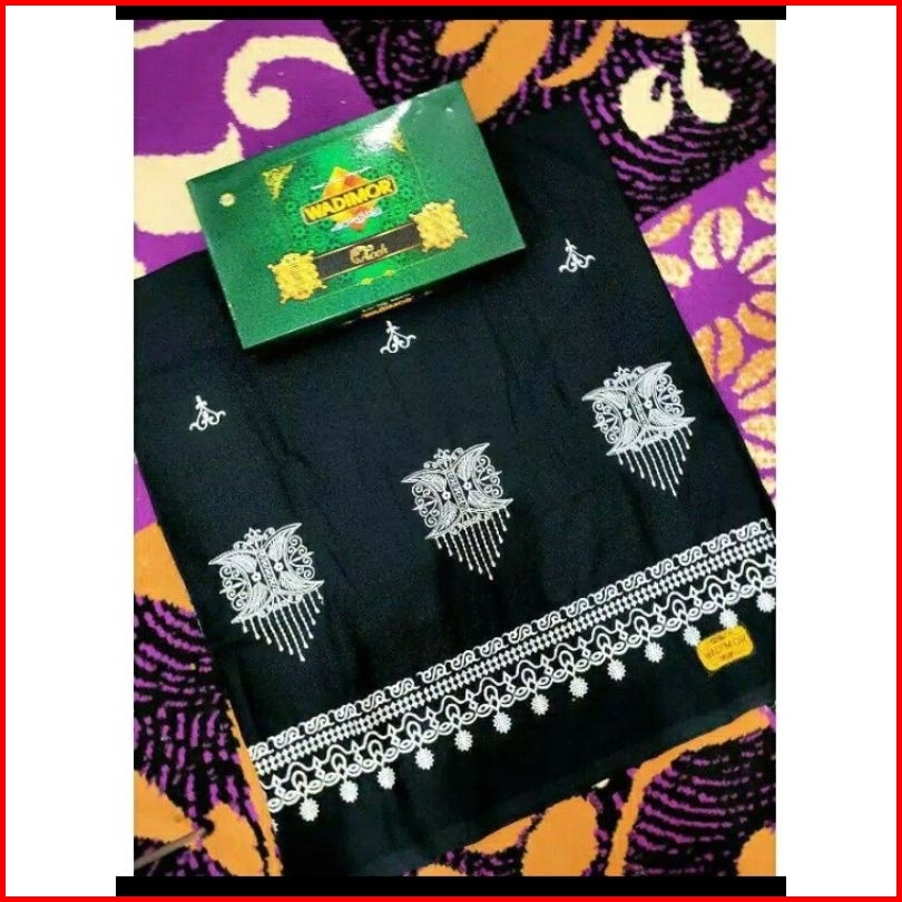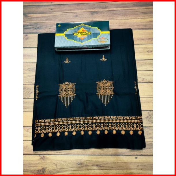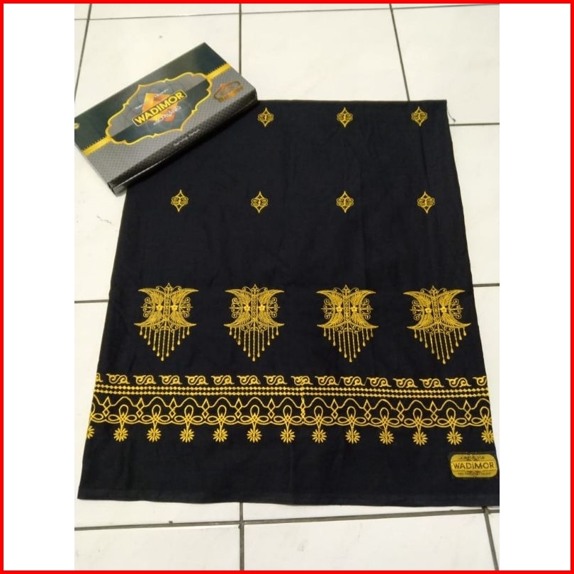 Sarung Bordir Wadimor Warna Hitam Benang Kuning Putih Motip Matahari Pintu Aceh