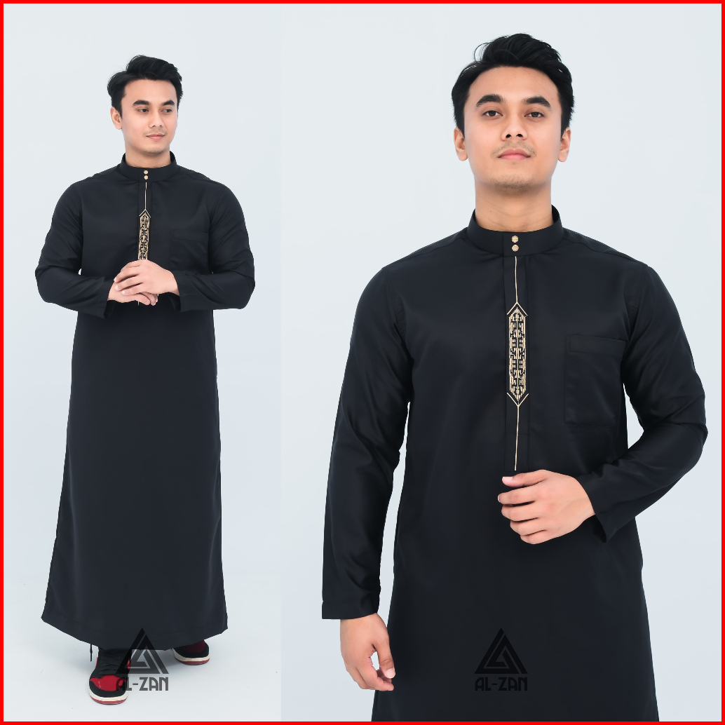 Jubah Pria Muslim Gamis Pria Muslim Lengan Panjang Bordir Jubbah Dewasa Katun Toyobo Hitam Putih Busana Muslim Pria Mode