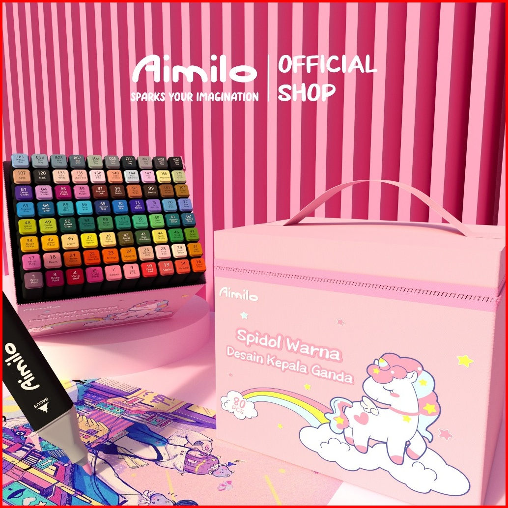 Ready Aimilo Spidol Warna Warni 1 Set Kemasan Kartun Sketch Marker 2 Tip Touch Marker 48 60 80 Warna