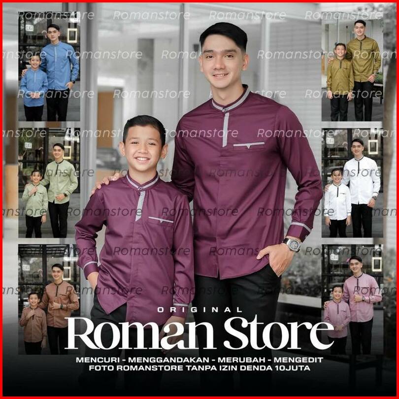 Baju Koko Couple Ayah Anak Laki Laki Lengan Panjang Terbaru 2025 Bahan Toyobo Import Warna Burgundy