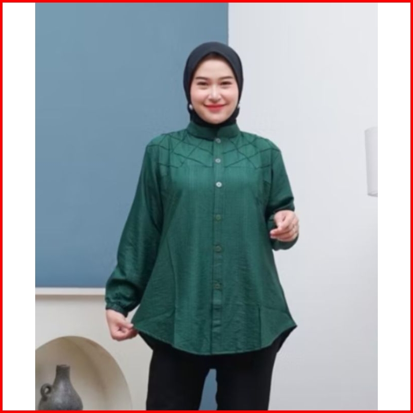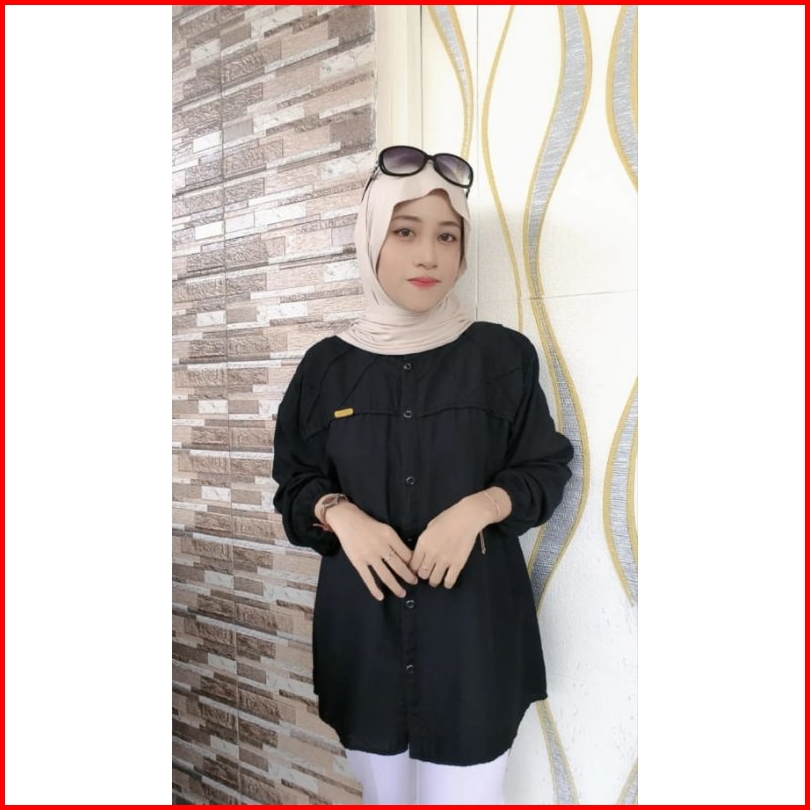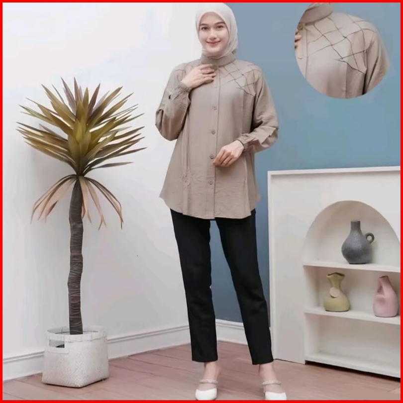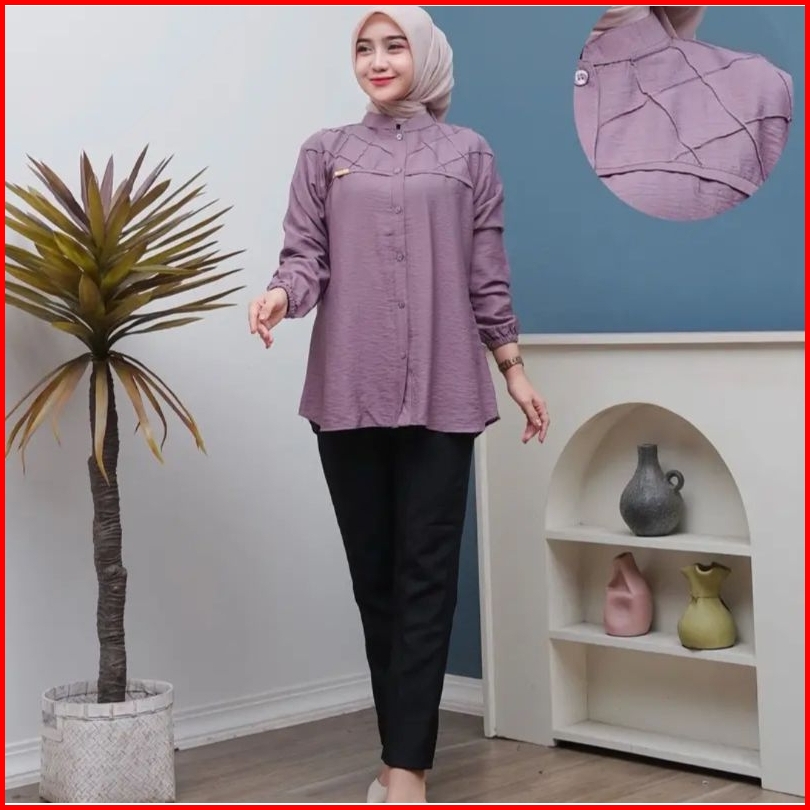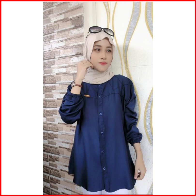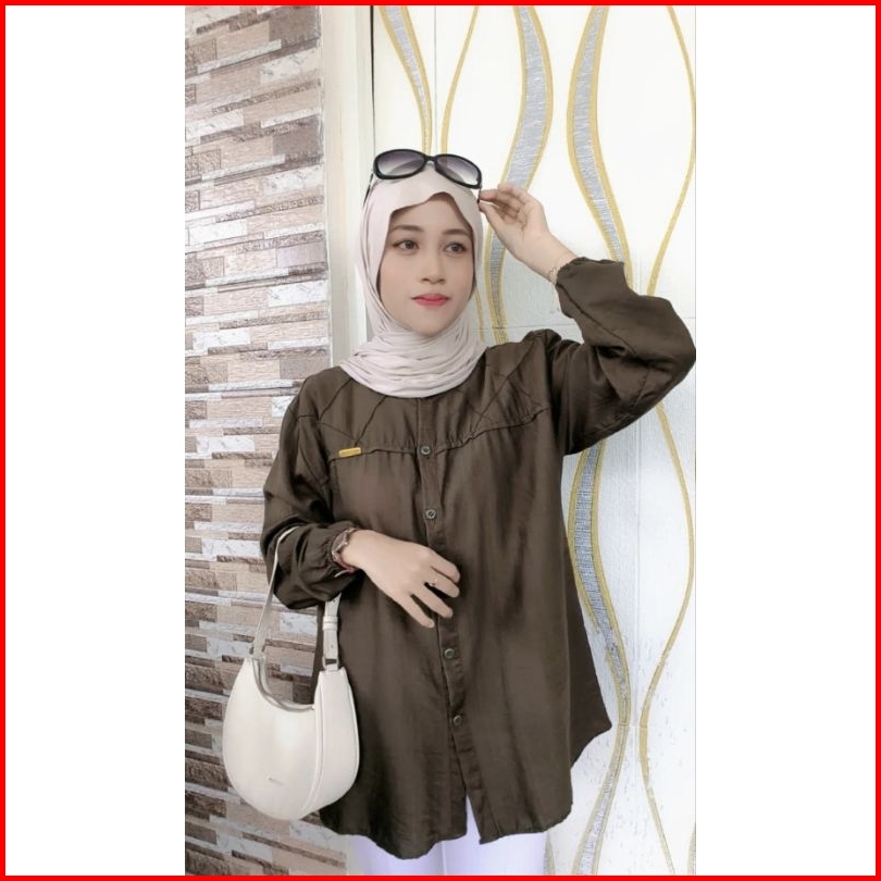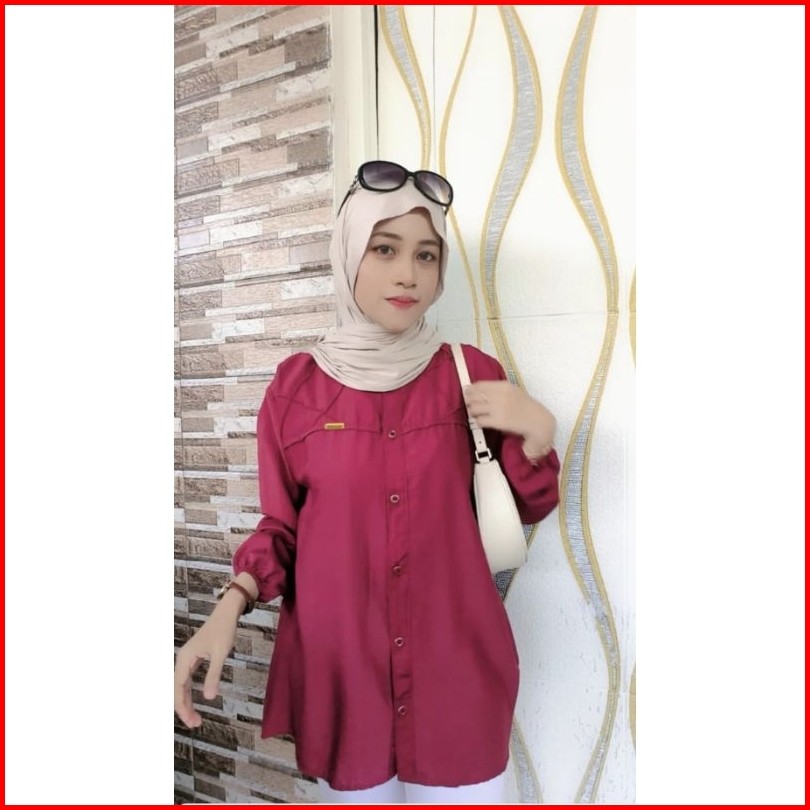 Kemeja Wanita Bahan Polo Linen Premium Luna Bluse Atasan Terbaru Kancing Belakang