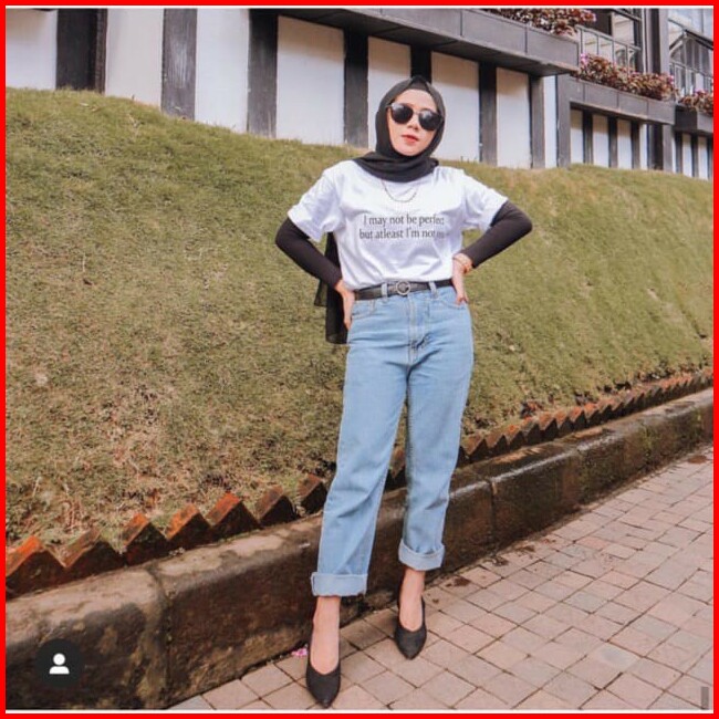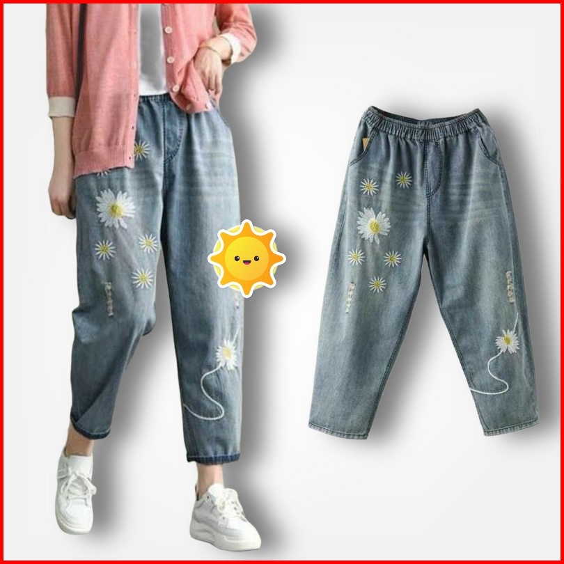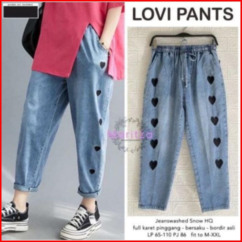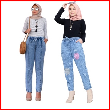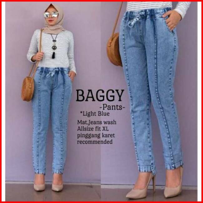 Celana Baggy Jeans Snow Boyfrieand Pinggang Full Karet Celana Jinjing