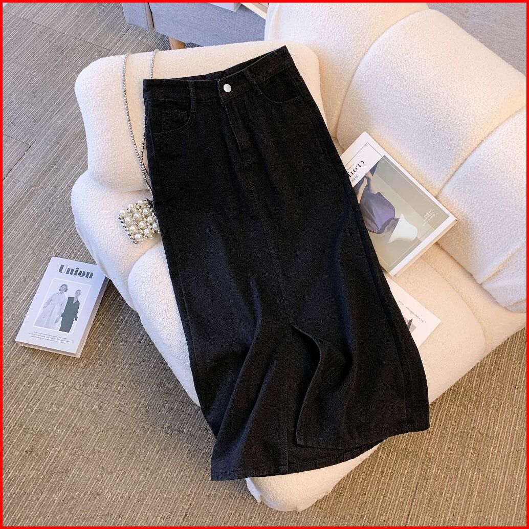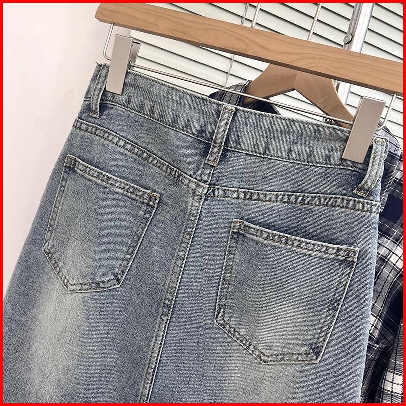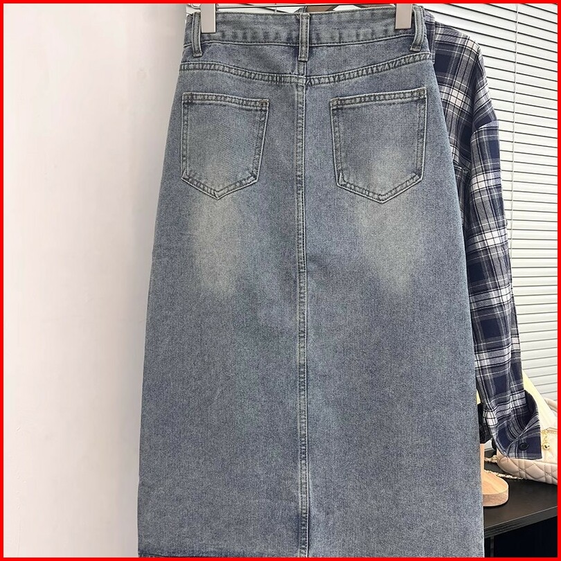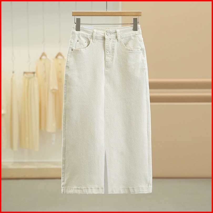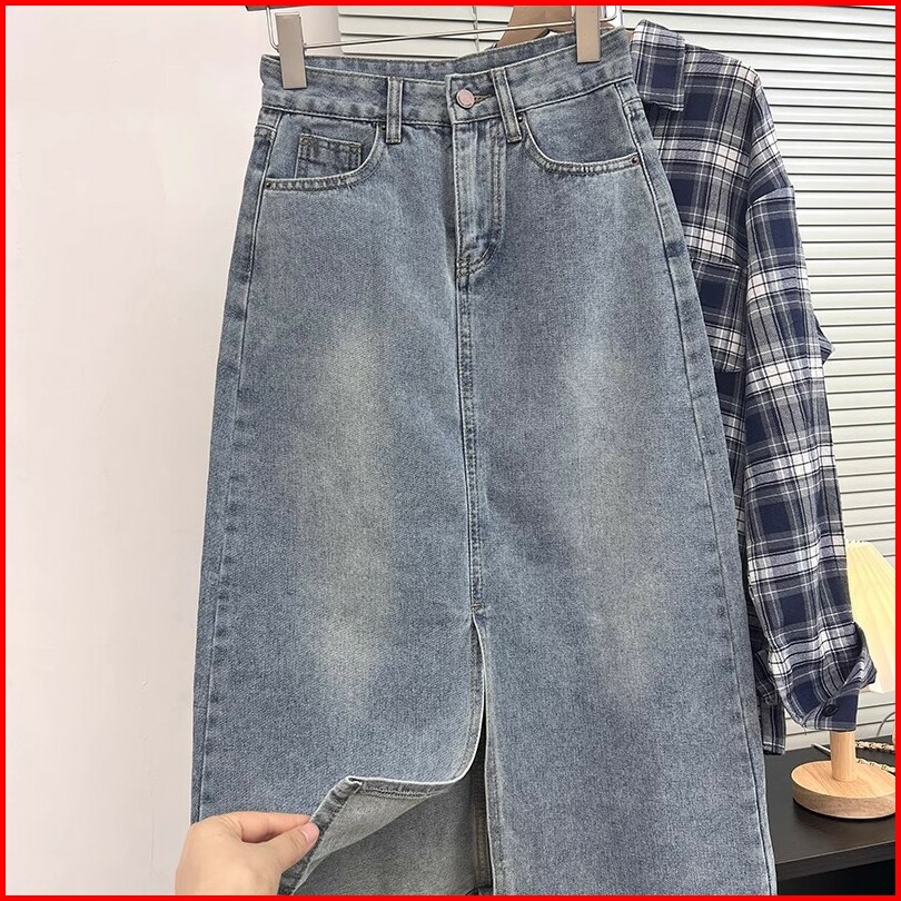 Keygirl Rok Jeans Belah Depan Premium Wanita Skirt A Line 7 8 Kekinian Jumbo Size Xs-5xl Fashion Highwaist Basic Skirt