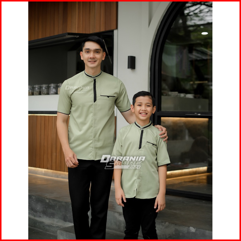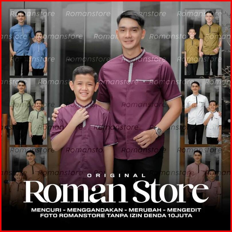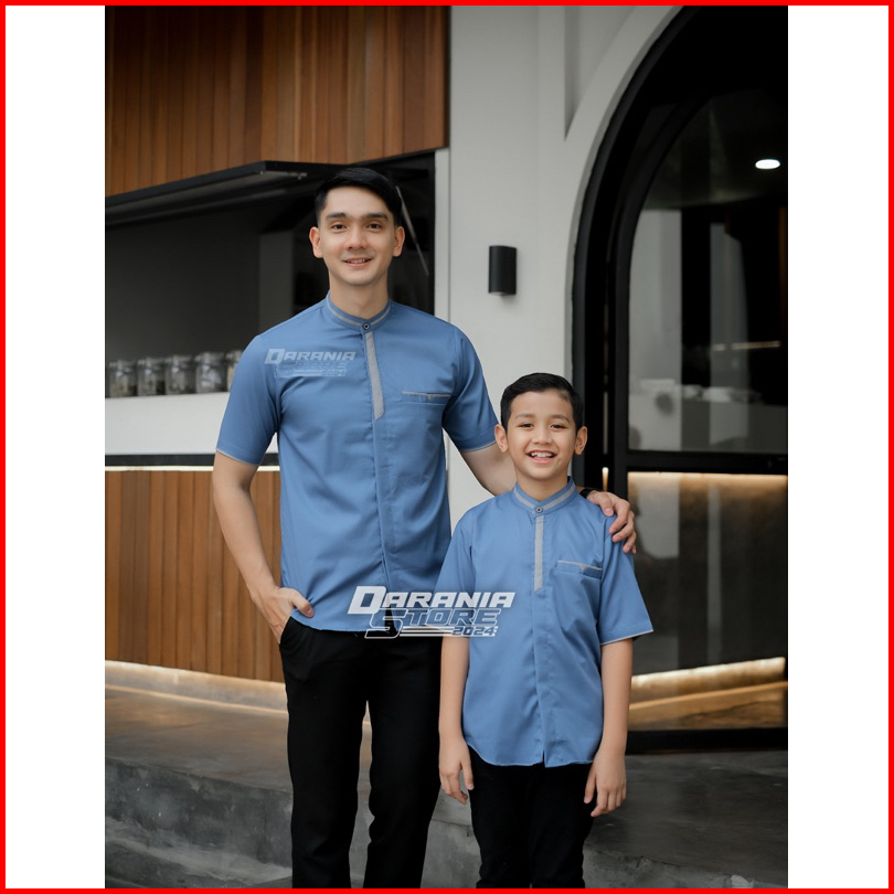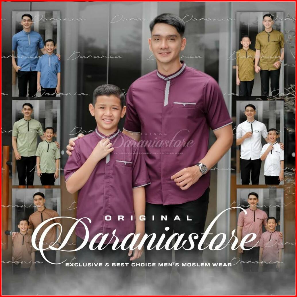 Baju Koko Couple Ayah Anak Lengan Pendek Bahan Toyobo Import Terbaru 2025 Warna Burgundy Denim